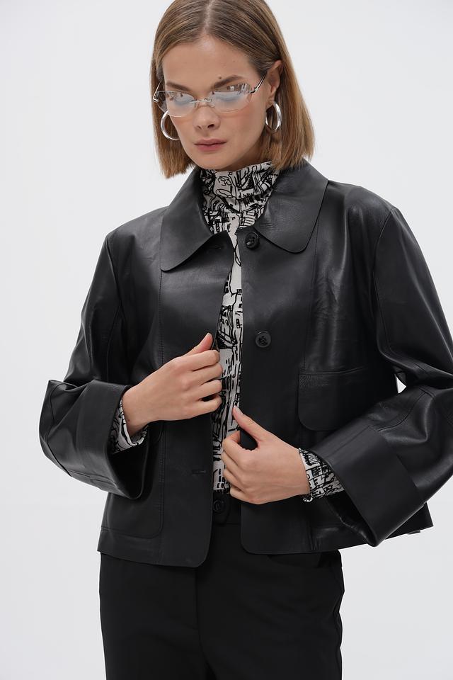 Жакет идеально сочетается с брюками, юбками и платьями, создавая стильные и элегантные образы. Данная модель станет прекрасным дополнением к вашему гардеробу и подчеркнет ваш безупречный вкус. Состав: 100% кожа.