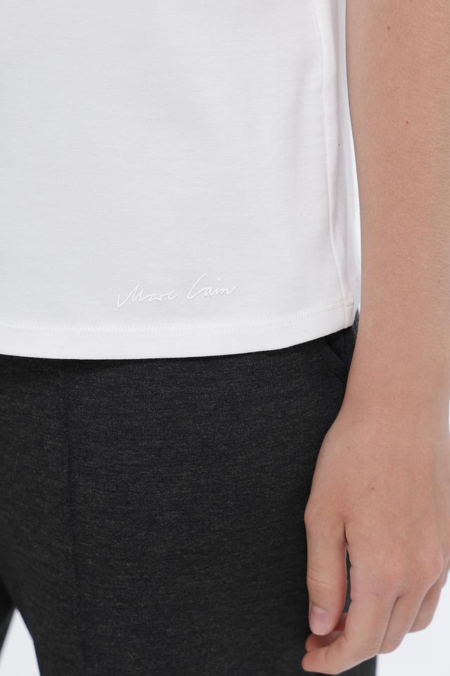 Белая футболка Marc Cain из хлопка с эластаном — это идеальная база для любого гардероба. Классический крой и лаконичный дизайн делают эту футболку универсальной и удобной в носке. Состав: хлопок 92%, эластан 8%