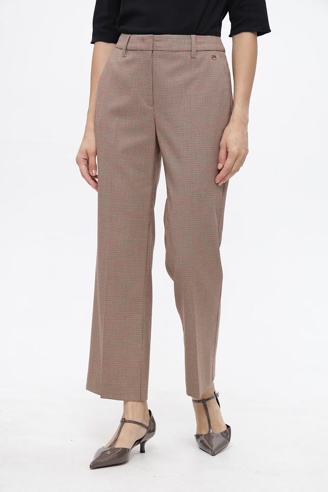Классические брюки клёш от бренда Marc Cain станут отличным дополнением к вашему гардеробу. Модель выполнена в актуальную клетку, сочетающую коричневые, бежевые, чёрные и белые оттенки.
