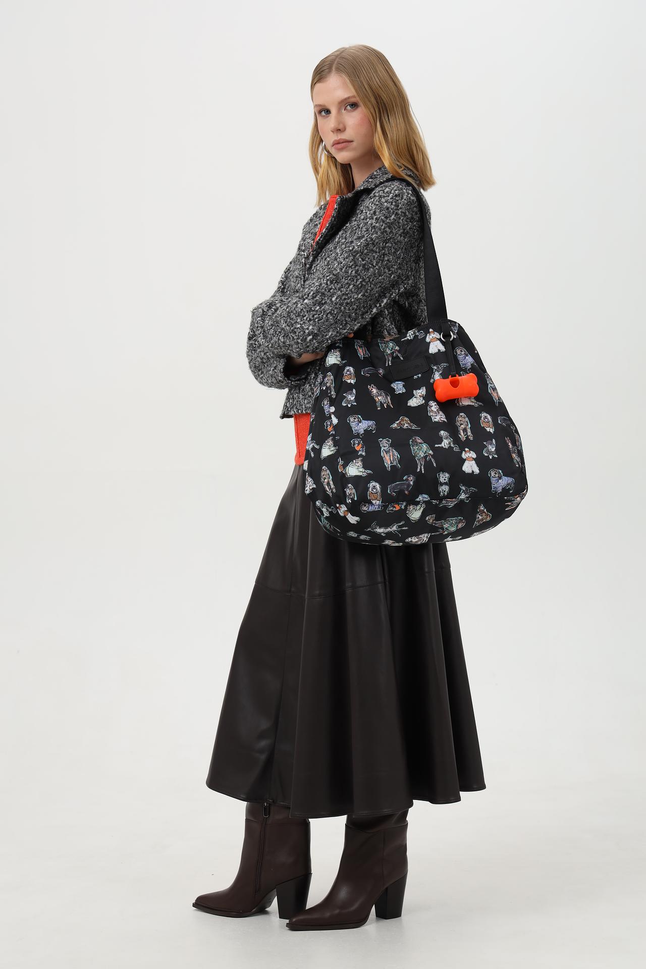 - Дизайн: Яркий и запоминающийся принт с разнообразными породами собак в одежде. Оригинальный оранжевый брелок в виде косточки добавляет изюминку.