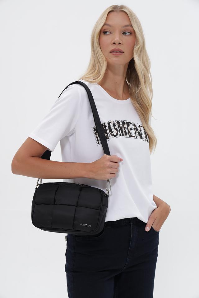 Особенностью модели является стеганая текстура, придающая сумке элегантный вид. Фронтальная часть сумки украшена логотипом бренда. Сумка оснащена удобным регулируемым ремнем, позволяющим носить ее на плече или через плечо.