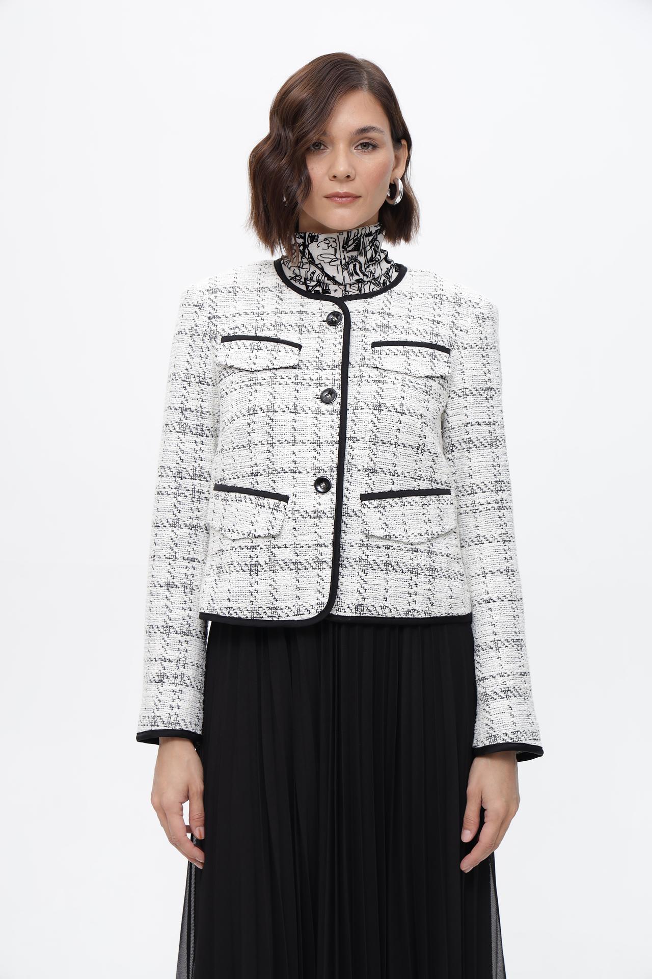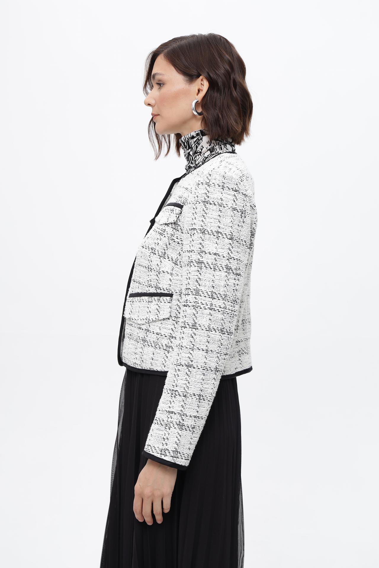 - Универсальность: Жакет легко вписывается в различные стилевые комбинации, от классики до кэжуал, позволяя создавать множество модных ансамблей.