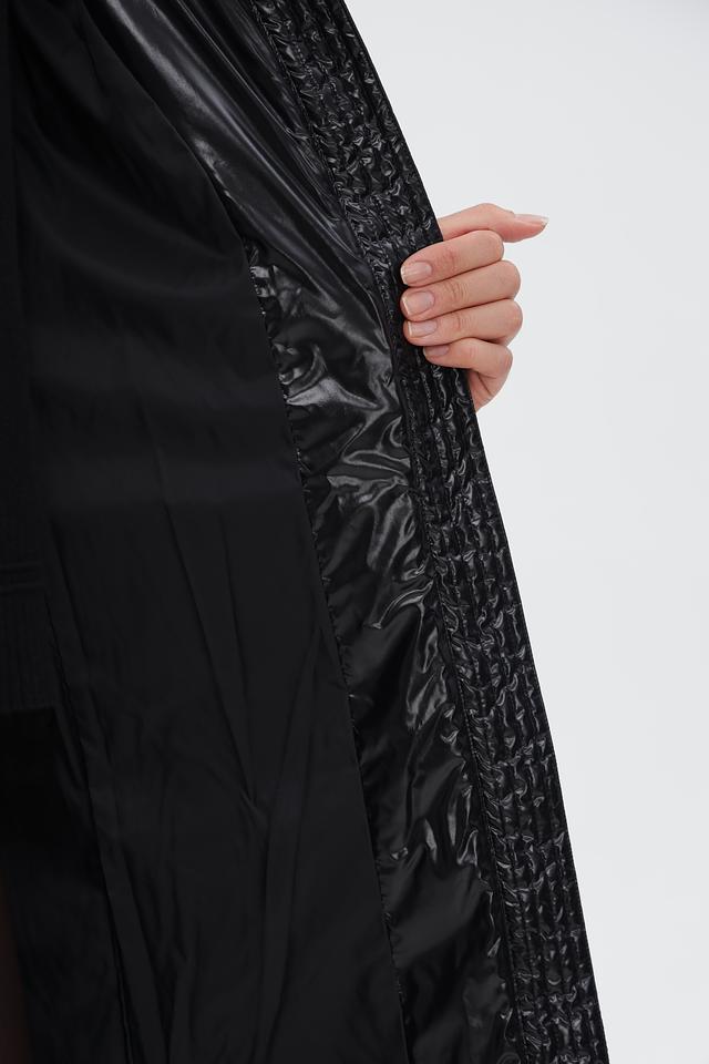 Пальто имеет прямой, приталенный силуэт, который подчеркивает фигуру. Капюшон добавляет функциональности и защищает от непогоды.