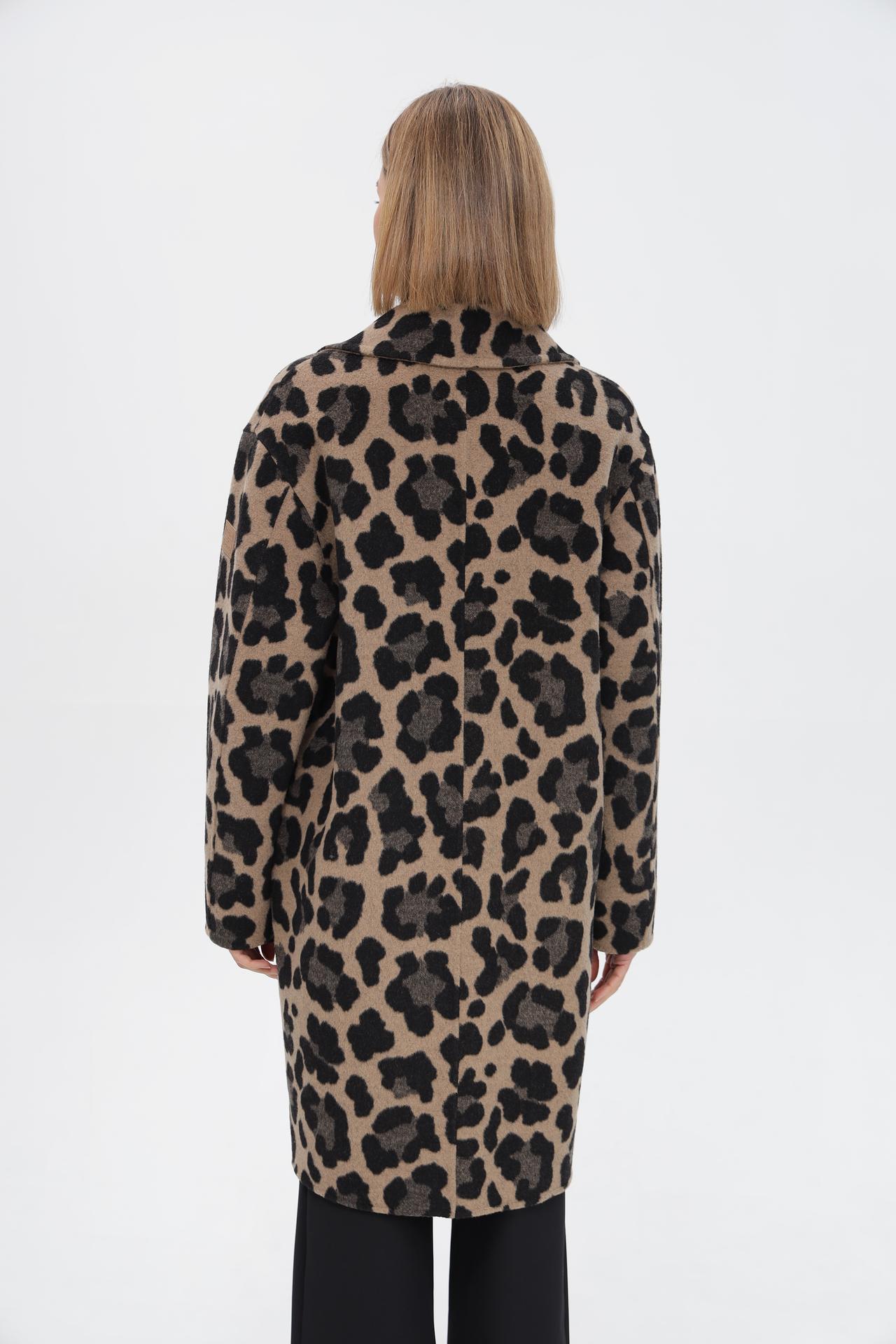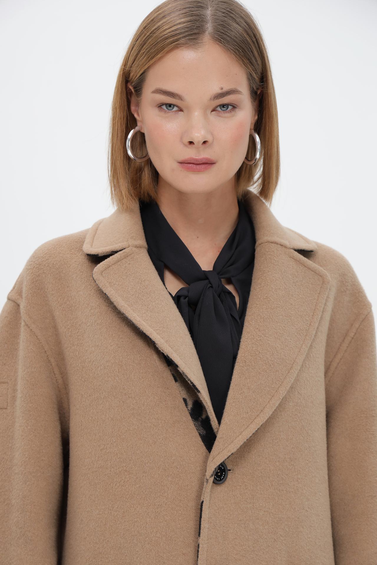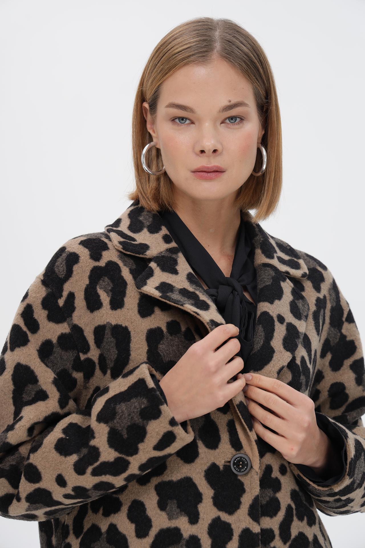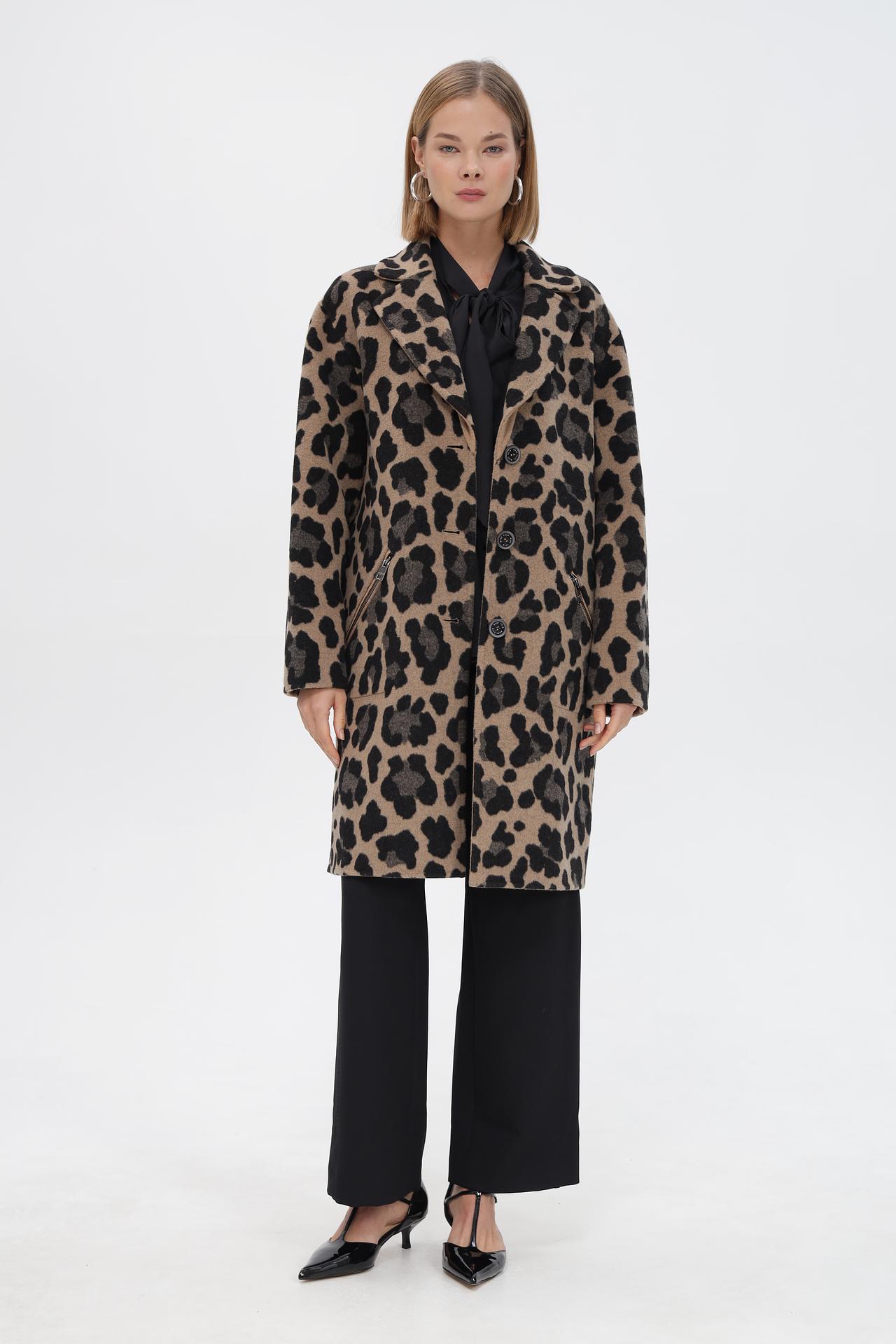 - Дизайн: Двустороннее пальто с эффектным леопардовым принтом на одной стороне и элегантным однотонным бежевым цветом на другой.