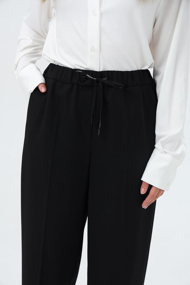 Черные брюки от Marc Cain Sports – это элегантность и комфорт в одном изделии. Выполнены из смесовой ткани с добавлением шерсти и эластана. Удобная посадка за счет эластичного пояса на кулиске. Состав: полиэстер 53%, шерсть 43%, эластан 4%