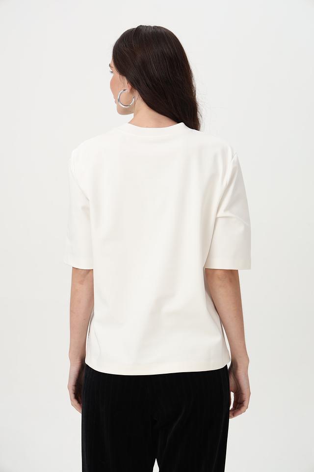 Модель имеет прямой, слегка свободный крой, который обеспечивает комфорт в носке. Круглый вырез горловины и короткие рукава делают футболку универсальной.