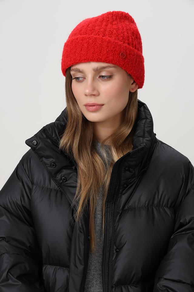 Красная вязаная шапка Marc Cain Sports – стильный и теплый аксессуар для зимы. Модель выполнена из мягкой смеси натуральных и синтетических волокон: шерсти, альпаки, акрила и полиамида. Состав: акрил 38%, альпака 34%, полиамид 15%, шерсть 13%