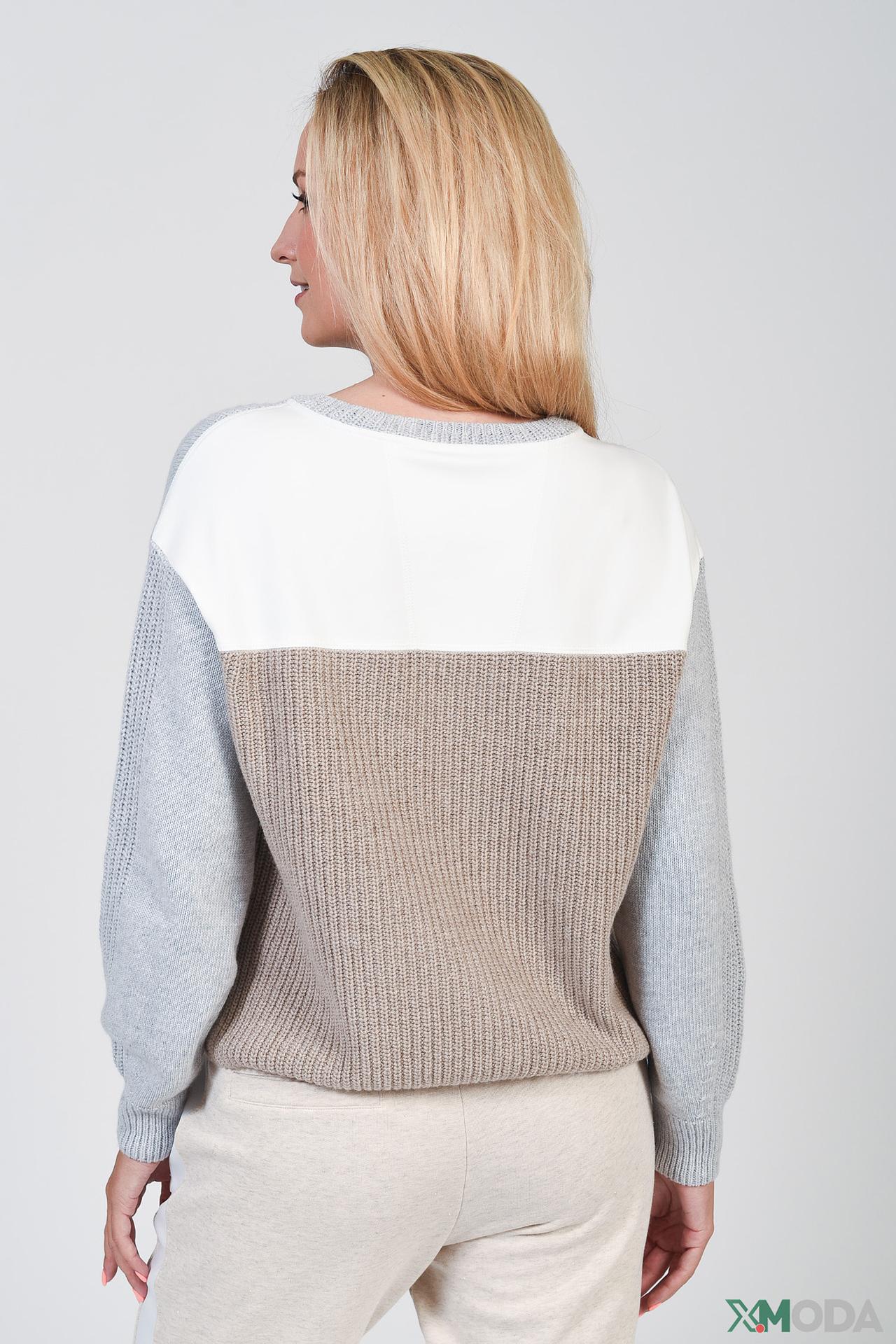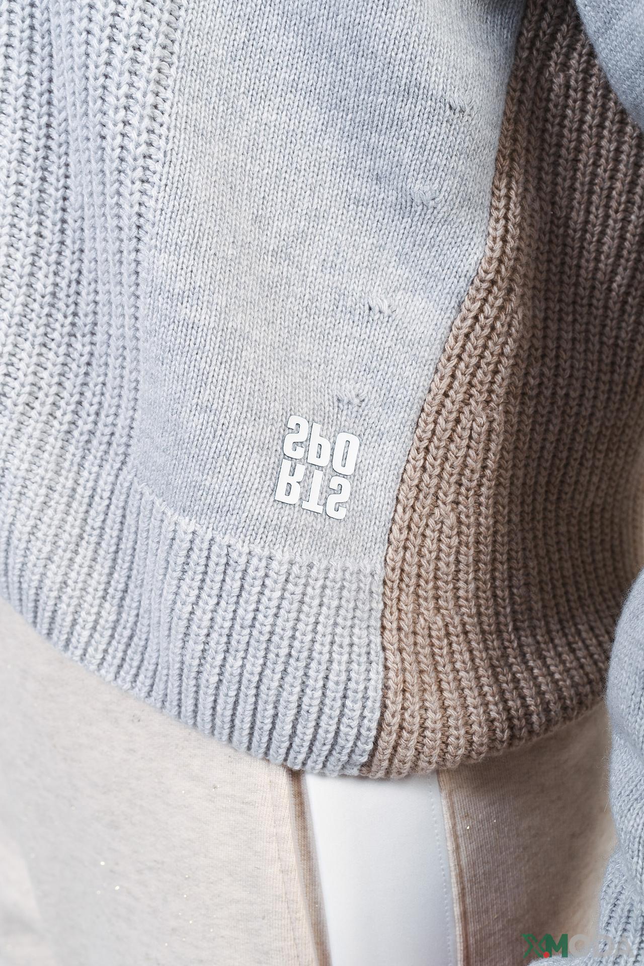 - Дизайн и отделка: Современный крой и комбинация цветовых блоков (серый, белый, бежевый) делают этот пуловер актуальным и модным. Интересная фактура вязки и аккуратные детали подчеркивают премиальное качество бренда.