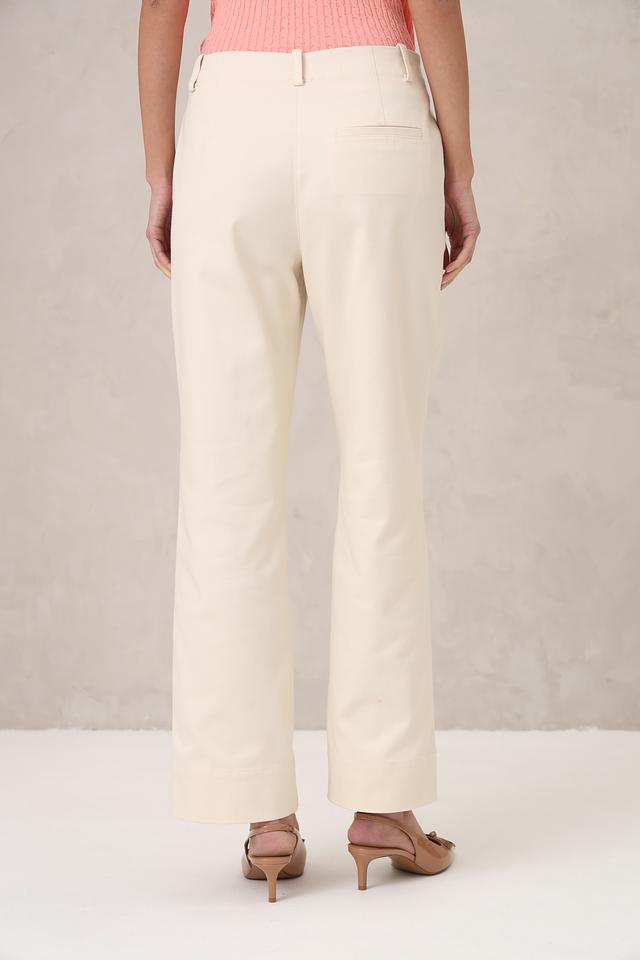 Брюки имеют прямой крой, который подходит для любого типа фигуры. Нейтральный бежевый цвет позволяет легко сочетать их с различными элементами одежды, создавая стильные и элегантные образы.