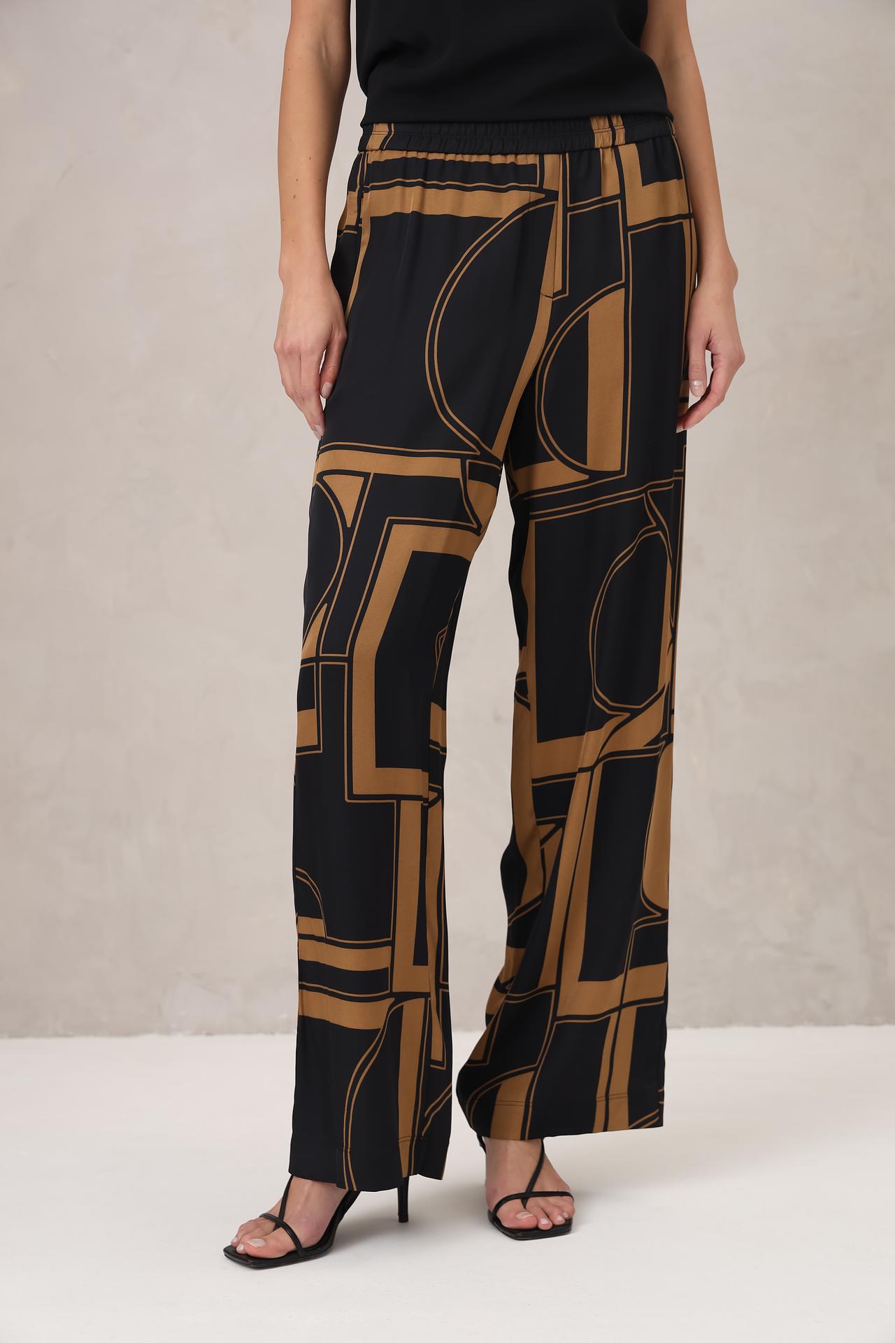 Элегантные брюки Marc O Polo из 100% вискозы станут идеальным дополнением вашего гардероба. Модель свободного кроя с эластичным поясом обеспечивает максимальный комфорт и свободу движений. Оригинальный геометрический принт в контрастных тонах придаст образу актуальности и стиля. Эти брюки прекрасно сочетаются как с классическими блузами, так и с повседневными футболками, создавая разнообразные модные образы.