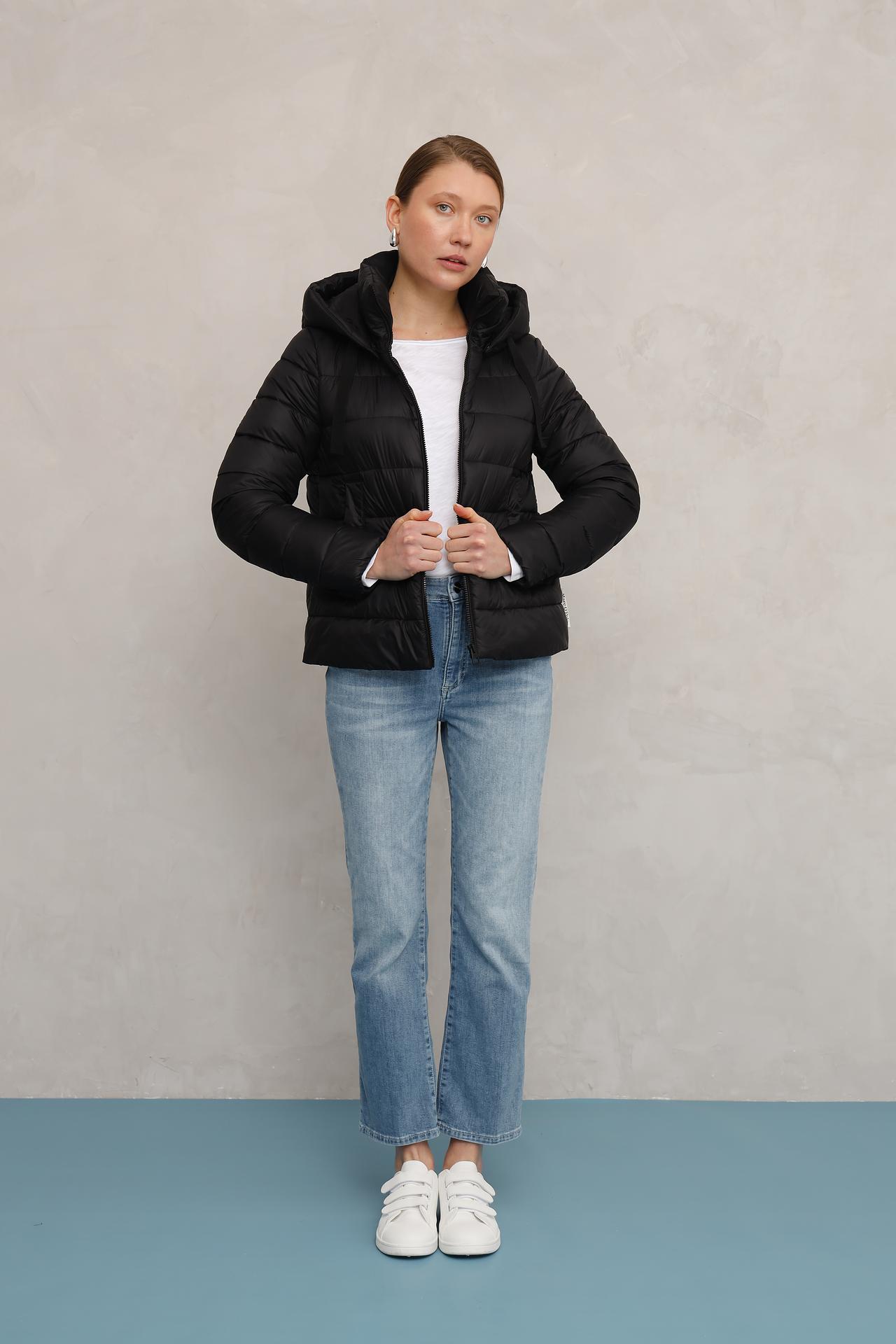 - Дизайн: Классический крой с капюшоном и горизонтальной стежкой. Куртка имеет застежку-молнию и удобные боковые карманы. Универсальный черный цвет подходит к любому стилю.