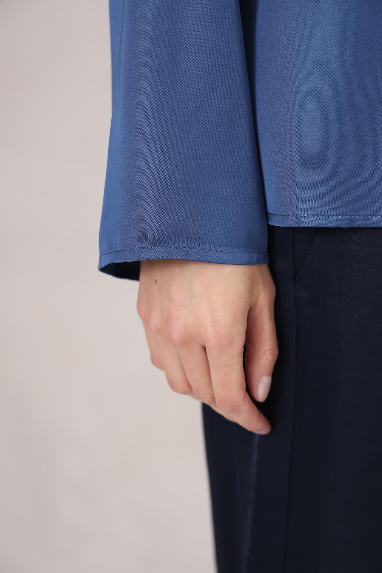 - Универсальность: Благодаря лаконичному дизайну и глубокому синему цвету, эта стильная блуза легко сочетается с брюками, юбками и джинсами. Она идеальна для офиса, вечерних мероприятий или неформальных встреч.