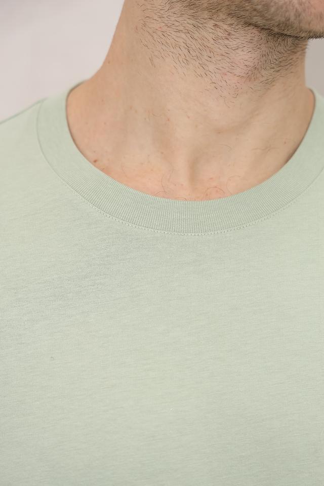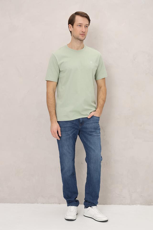 Особенностью данной модели является её нежный мятный цвет, который легко сочетается с различными элементами гардероба. На левой стороне груди расположен небольшой вышитый логотип бренда, добавляющий футболке изысканности.
