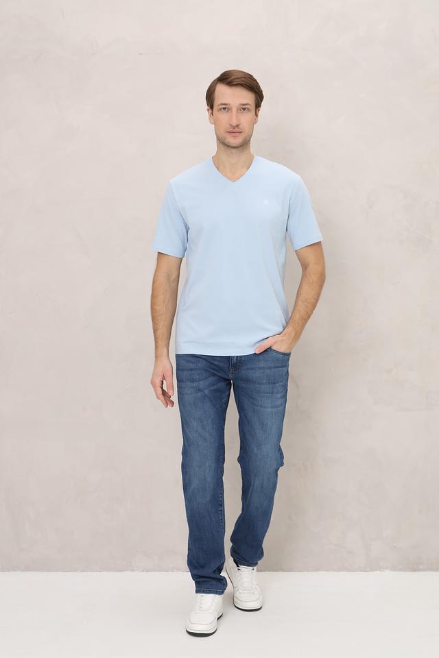 Эта футболка от Marc O Polo станет отличным дополнением к вашему повседневному образу. Она выполнена в нежном голубом цвете и имеет классический крой с V-образным вырезом.