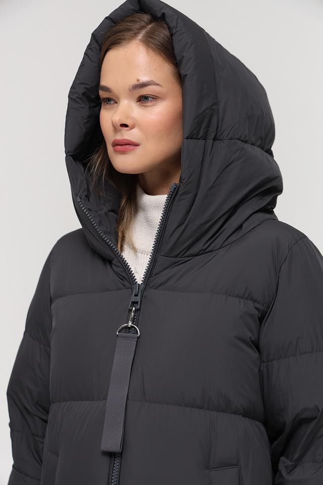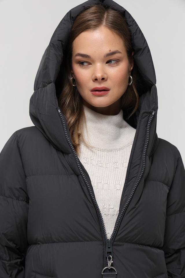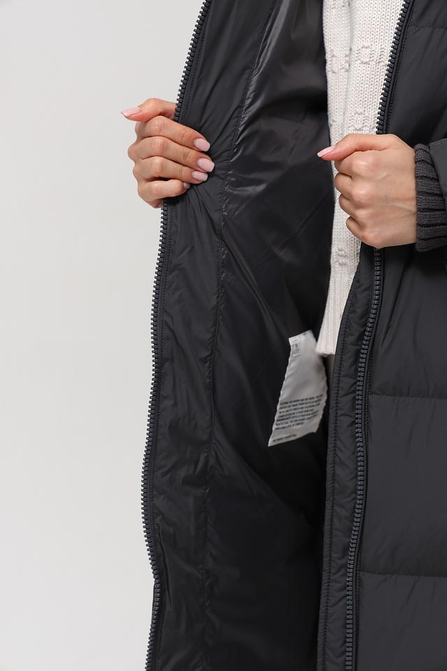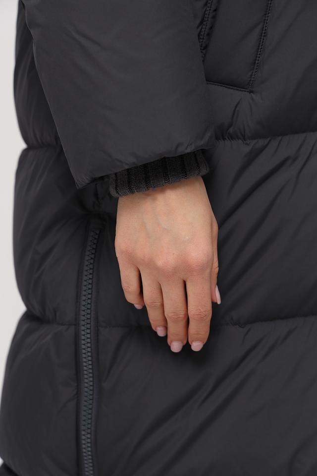 Данная модель выполнена в классическом чёрном цвете и имеет стеганую фактуру, которая придает ей особый шарм. Пальто имеет удобный капюшон, который защитит от непогоды, а застежка-молния обеспечивает легкость в использовании.