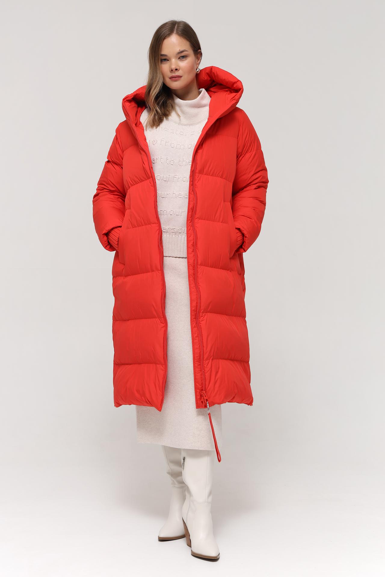 Пальто-пуховик Marc O Polo красное длинное с капюшоном