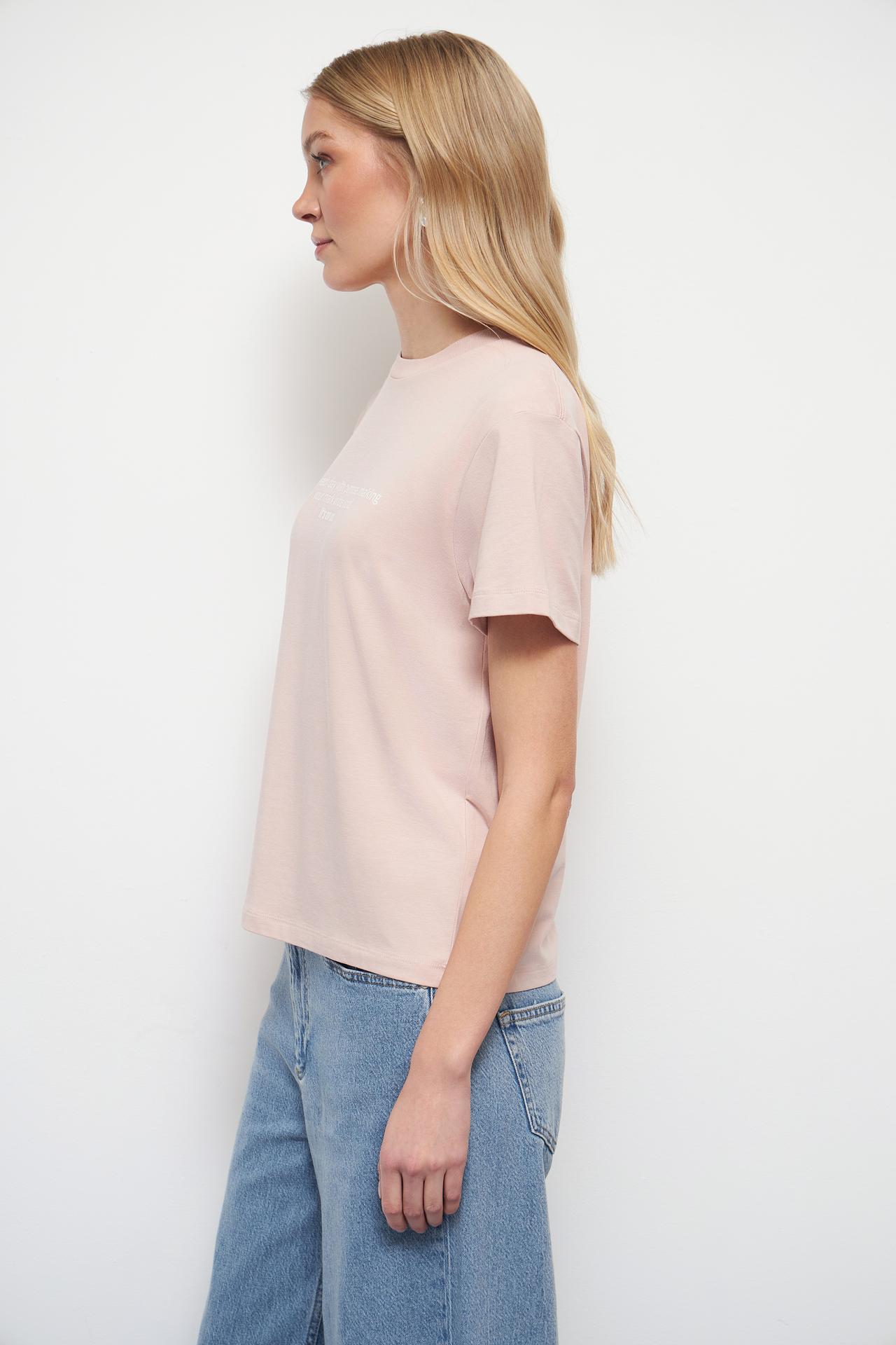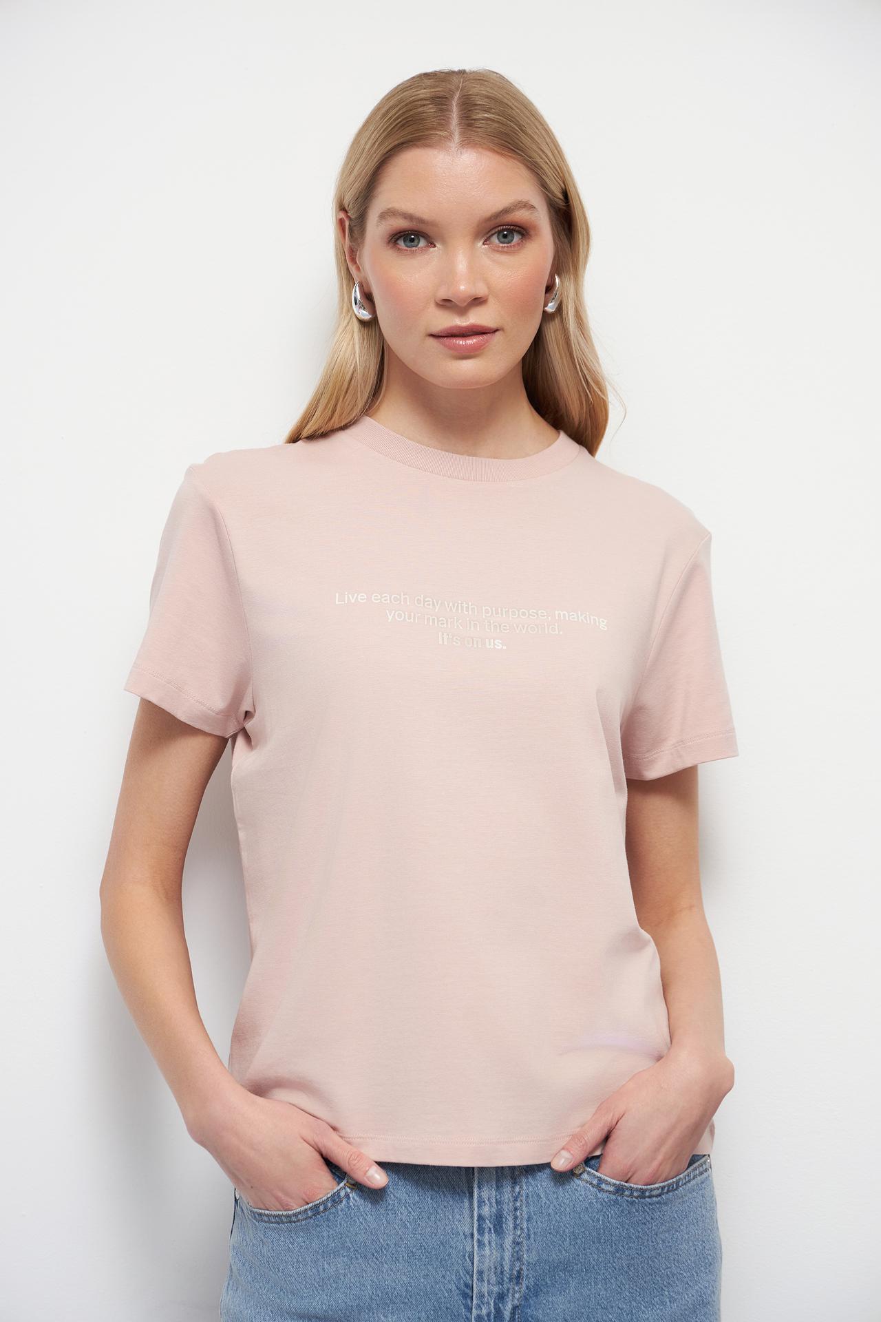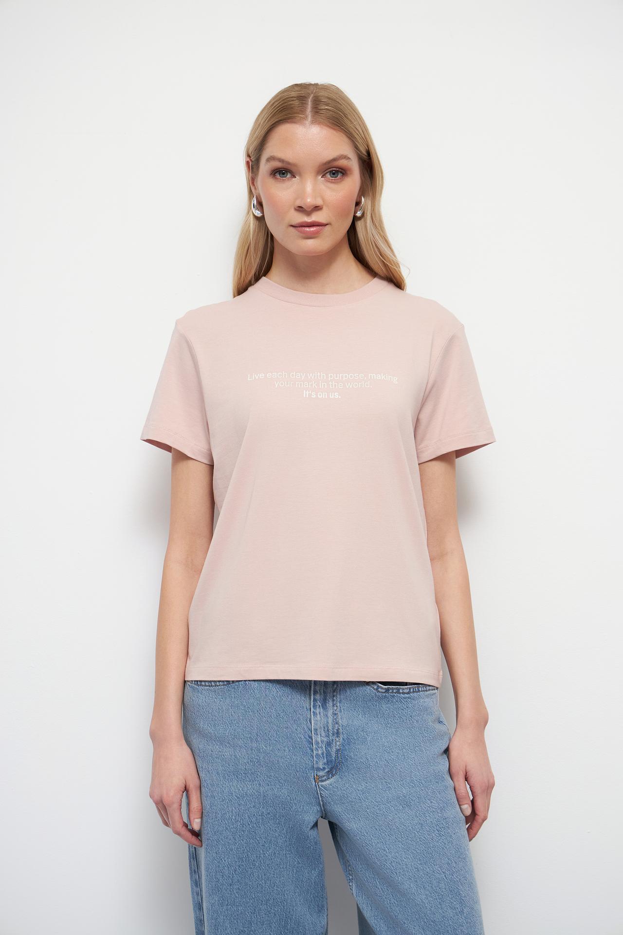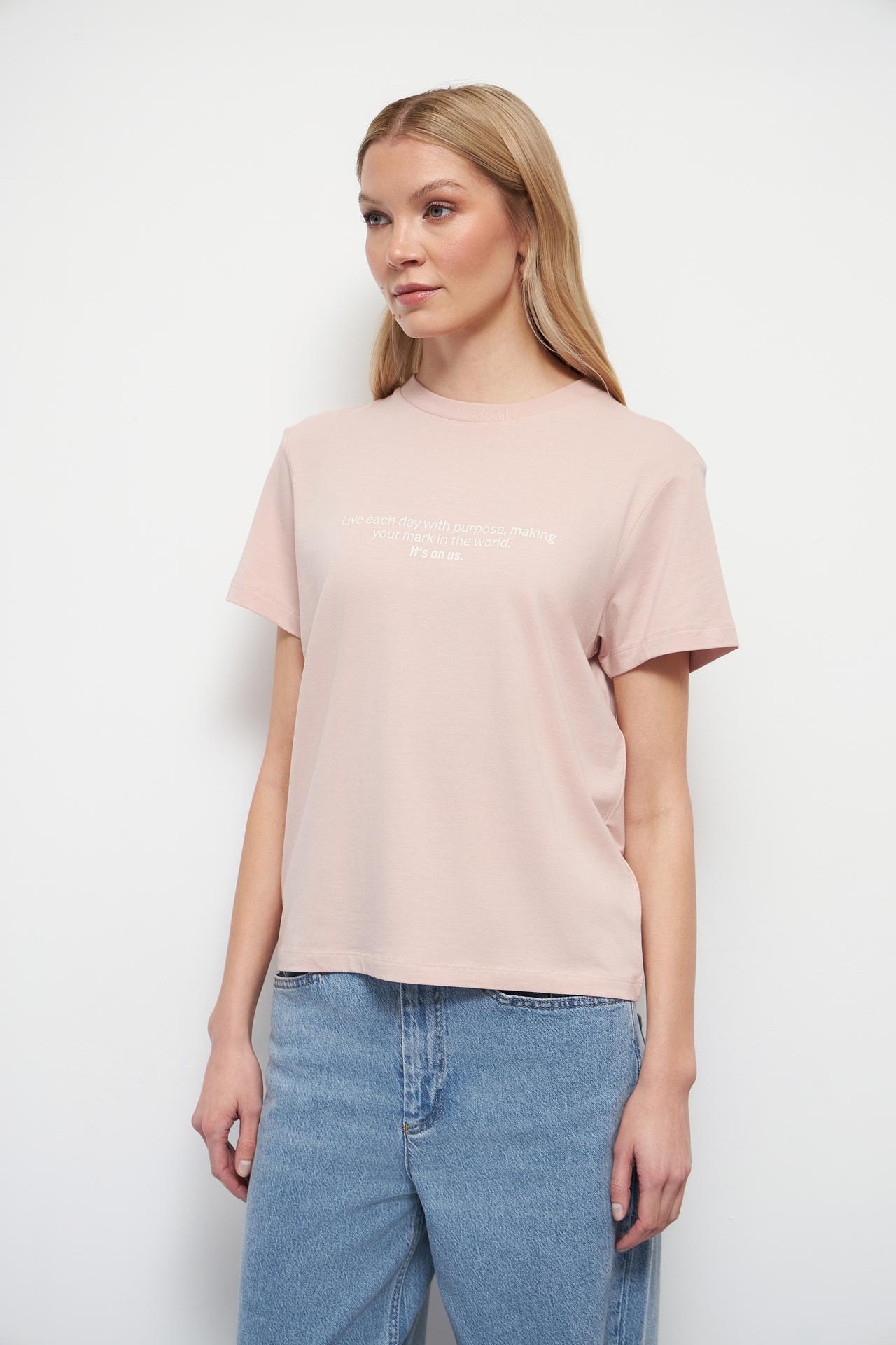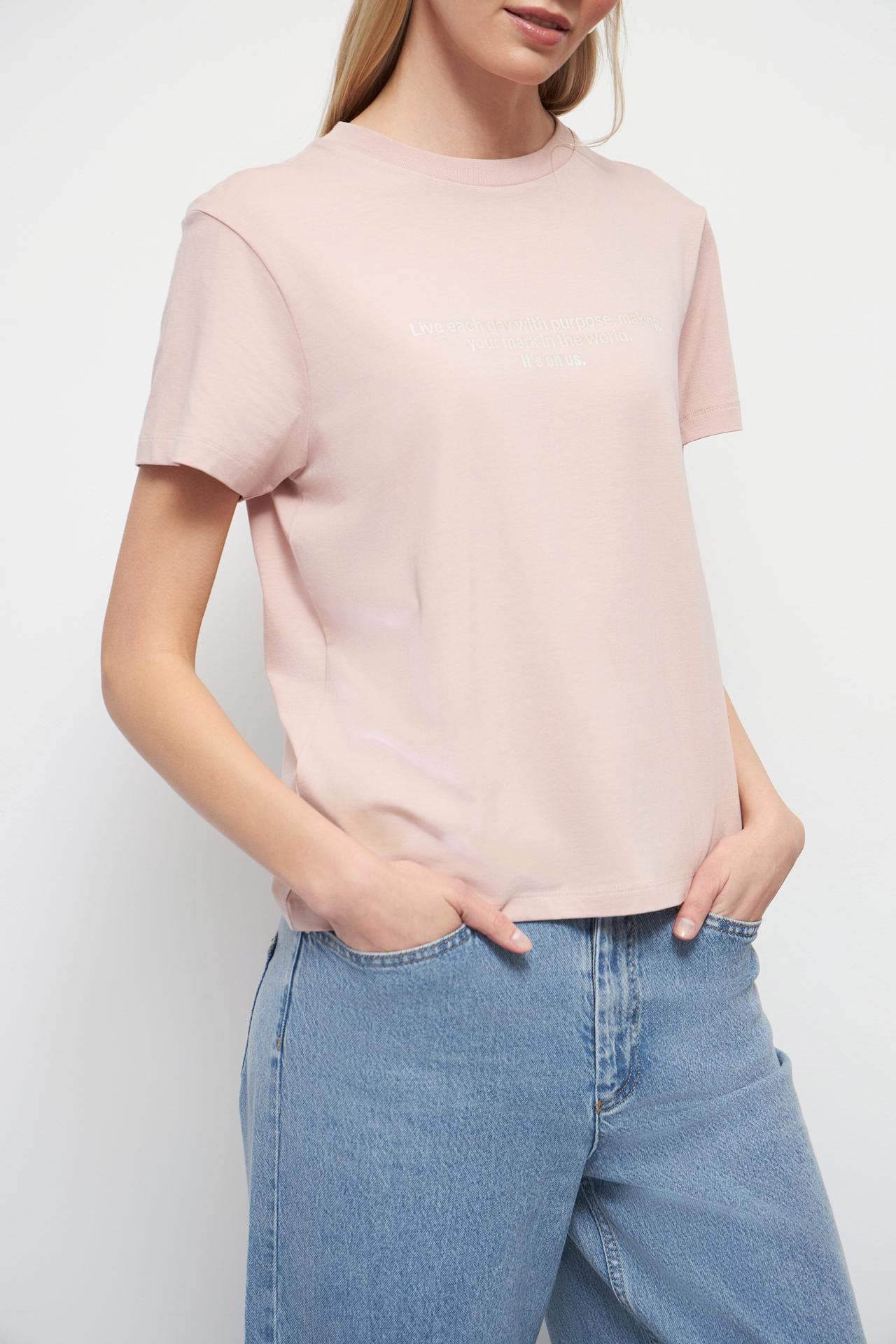 Футболка с короткими рукавами и круглым вырезом горловины украшена стильной надписью, придающей образу индивидуальность. Прямой крой обеспечивает свободу движений, а лаконичный дизайн позволяет сочетать футболку с различными элементами гардероба. Отличный выбор для создания модных и комфортных образов.