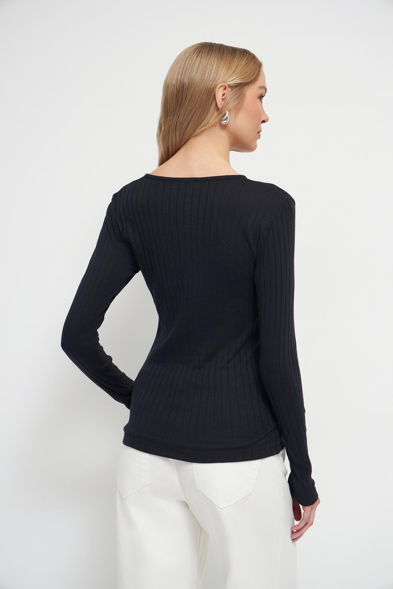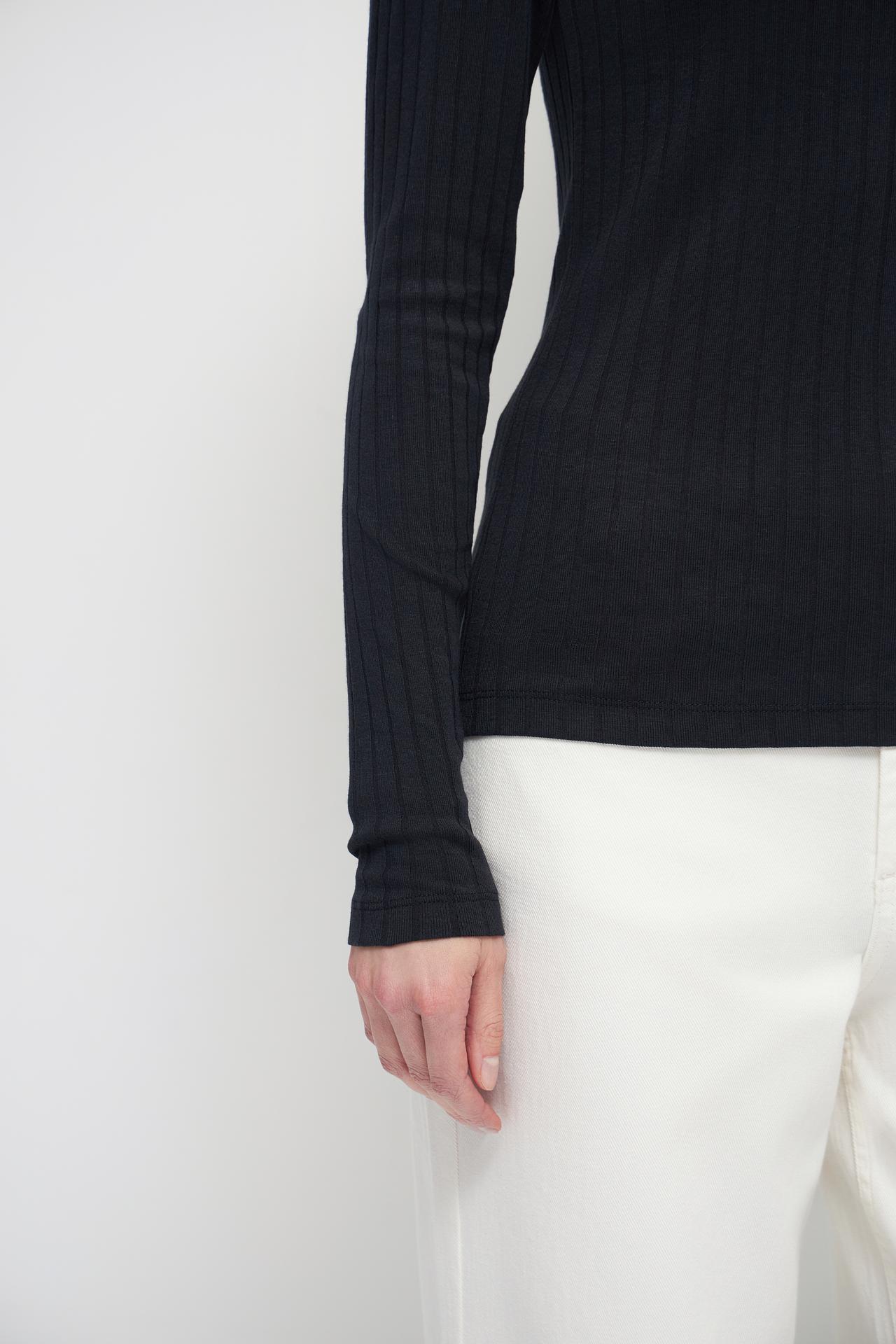 - Универсальность: Базовый черный цвет и простой крой позволяют легко сочетать лонгслив с различными предметами гардероба, от джинсов до юбок. Он отлично подходит как для повседневных, так и для более элегантных образов.