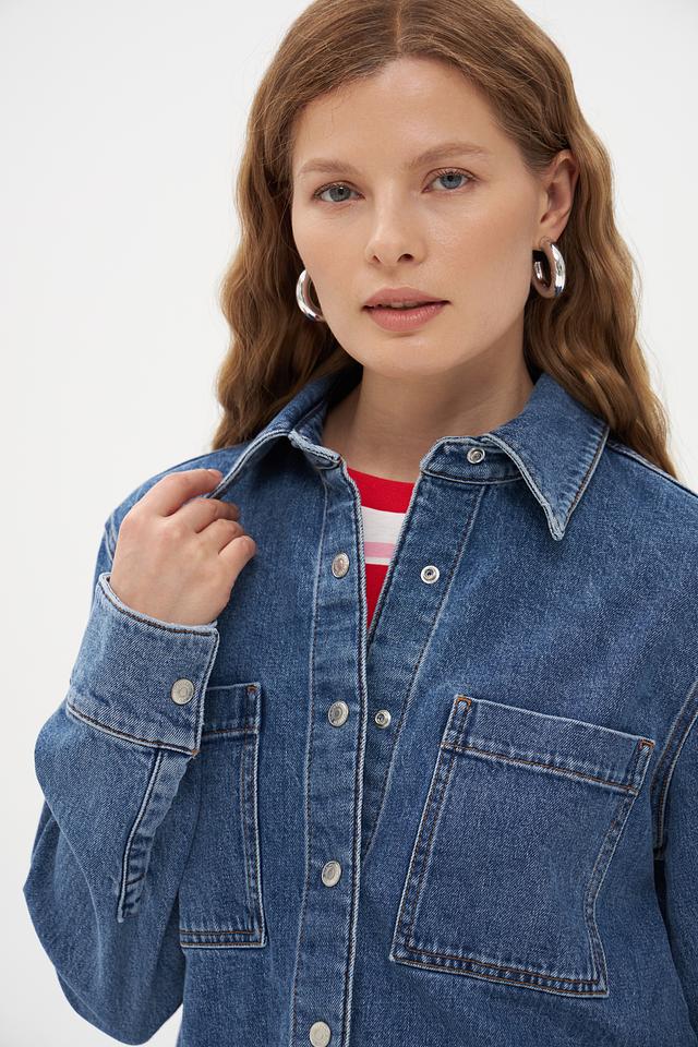 Состав ткани: 79% хлопок, 20% вискоза, 1% эластан. Рубашка идеально подходит для создания повседневных образов, ее можно носить как самостоятельный элемент одежды, так и в качестве легкой куртки поверх футболки или топа.