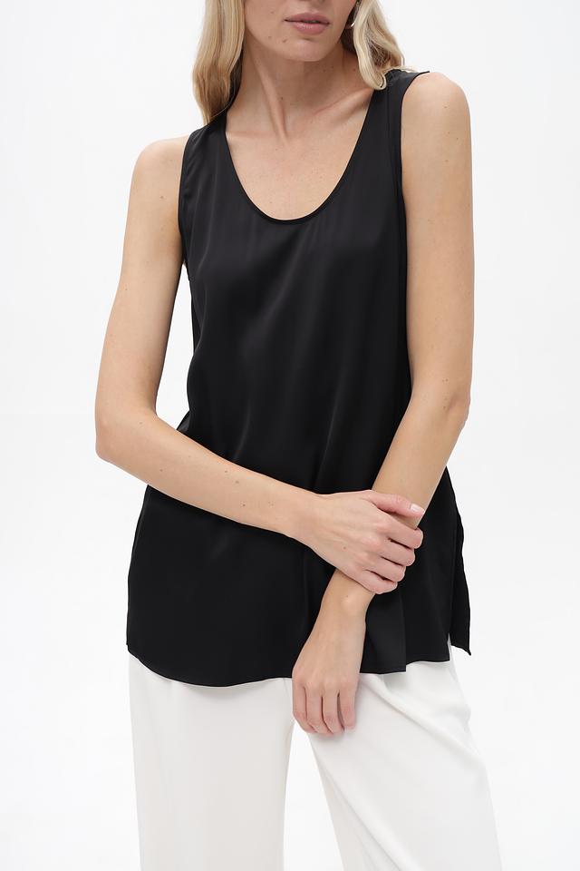 Чёрный топ от Marc O Polo из вискозы с эластаном. Лаконичный крой и лёгкая ткань делают этот топ идеальным для создания повседневных образов. Состав: вискоза 96%, эластан 4%