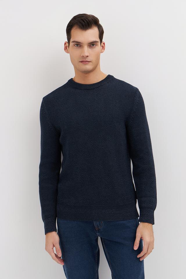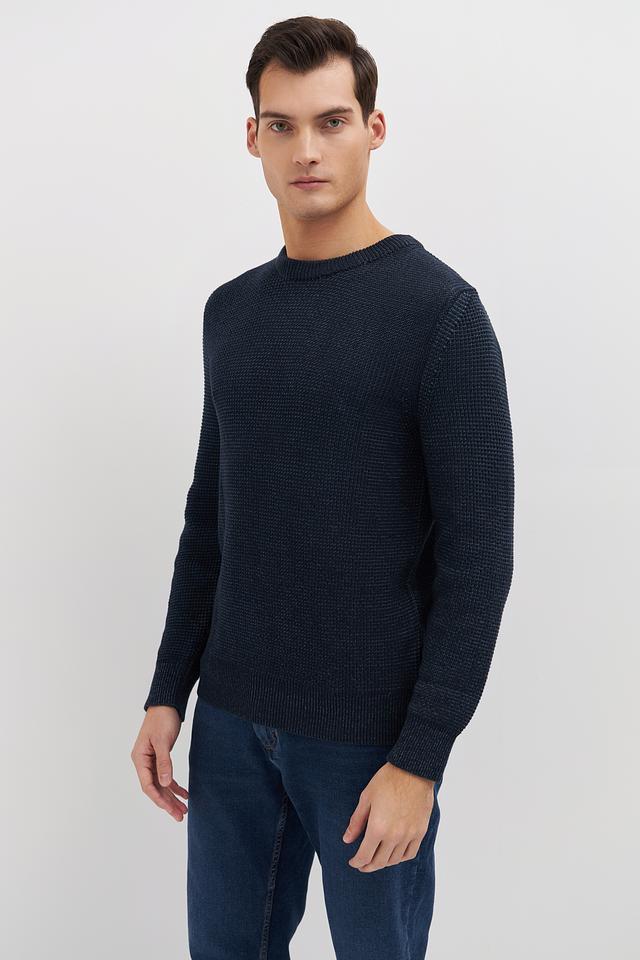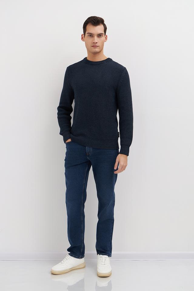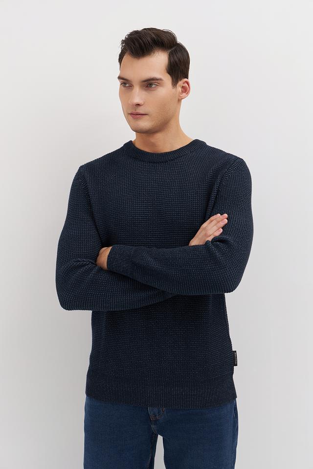 Мужской джемпер Marc O Polo тёмно-синего цвета выполнен из 100% хлопка и имеет текстурную вязку. Классический крой и круглый вырез делают этот джемпер универсальным дополнением к вашему гардеробу. Состав: хлопок 100%