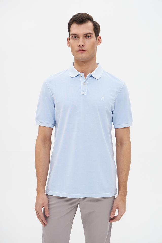 Данная модель имеет классический крой, который подходит для большинства типов фигур. Голубой цвет придает поло свежий и современный вид, позволяя легко сочетать его с различными элементами гардероба.