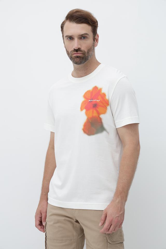 Мужская футболка Marc O Polo белого цвета с ярким цветочным принтом на груди. Изготовлена из 100% хлопка, обеспечивающего комфорт и воздухопроницаемость. Стильный и удобный выбор для повседневного образа. Состав: хлопок 100%