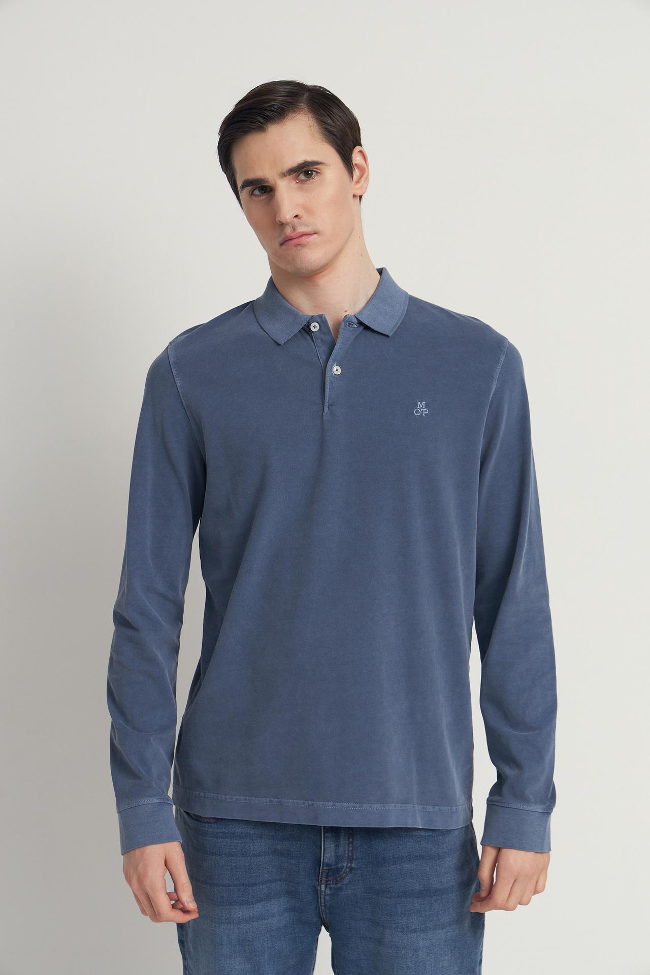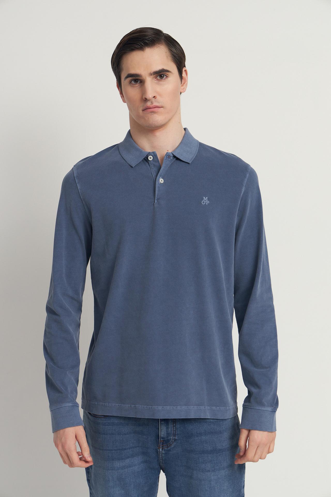 Поло Marc O Polo мужское синее из хлопка с длинным рукавом
