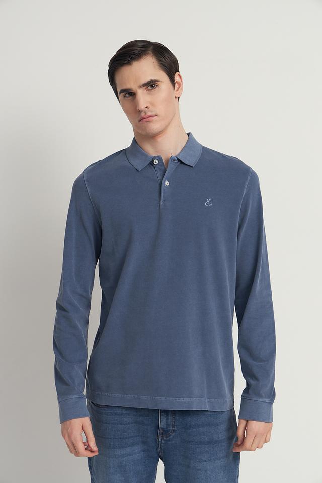 Это мужское поло от Marc O Polo выполнено в спокойном синем цвете и имеет длинный рукав, что делает его отличным выбором для прохладной погоды или для создания многослойного образа.