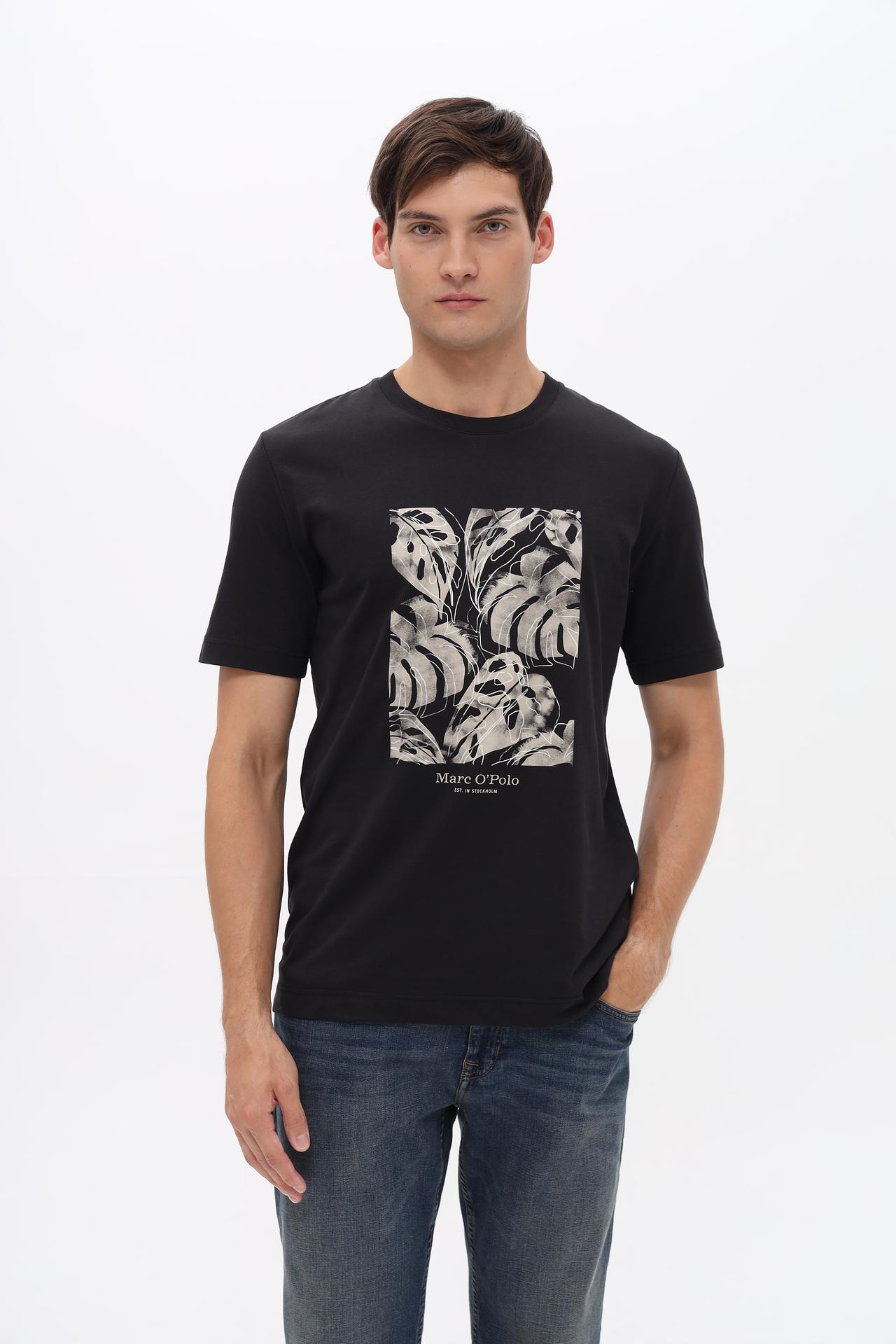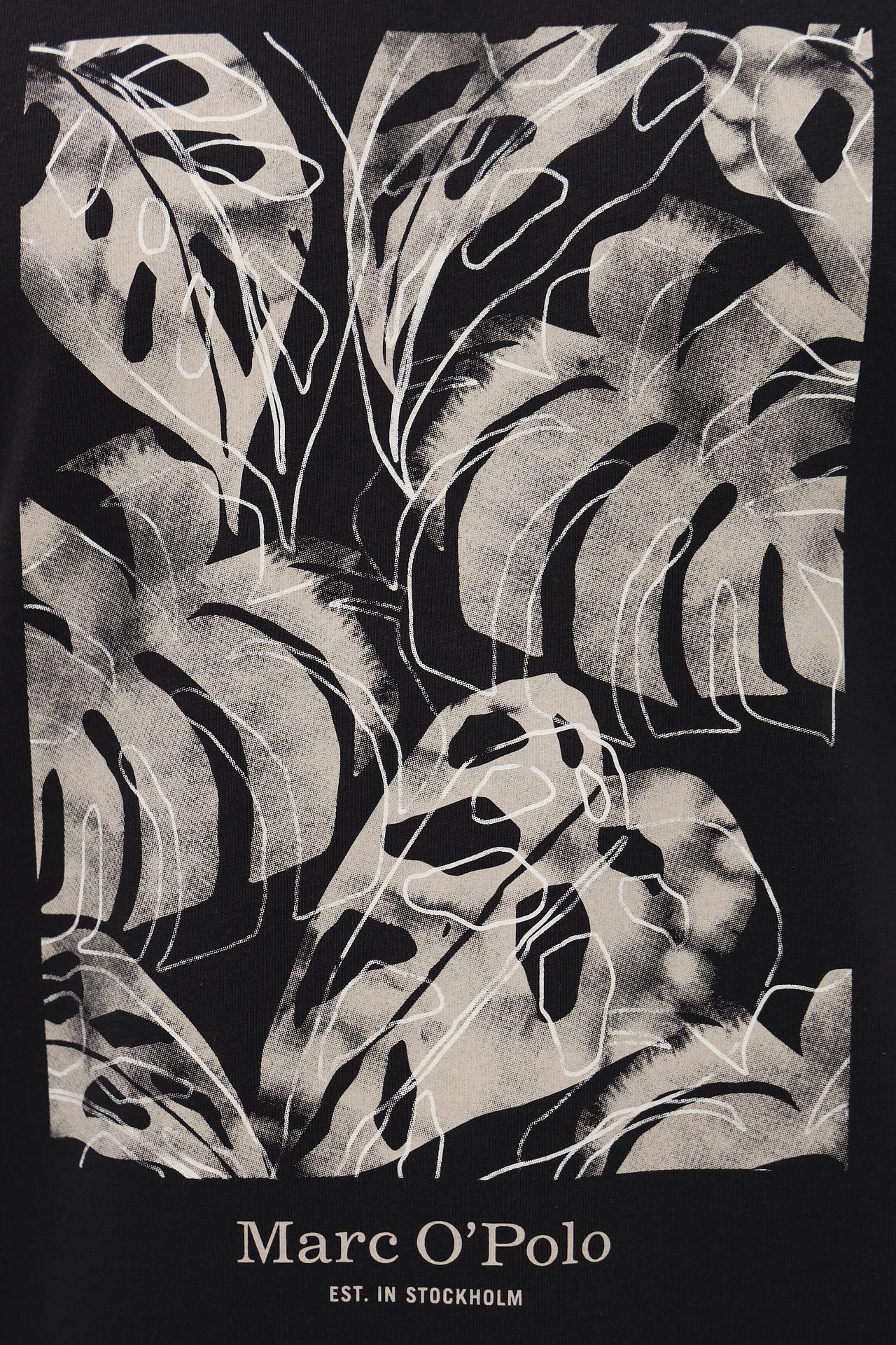 Футболка от Marc O Polo – это идеальное сочетание комфорта и стиля для вашего повседневного гардероба. Созданная из 100% хлопка, она обеспечивает непревзойденную мягкость и воздухопроницаемость, позволяя коже дышать в течение всего дня. Классический черный цвет футболки выгодно подчеркивает оригинальный принт с изображением тропических листьев, выполненный в монохромной гамме. Этот элемент дизайна добавляет образу нотку экзотики и утонченности. Футболка прекрасно дополнит как повседневные, так и более расслабленные образы.