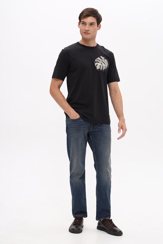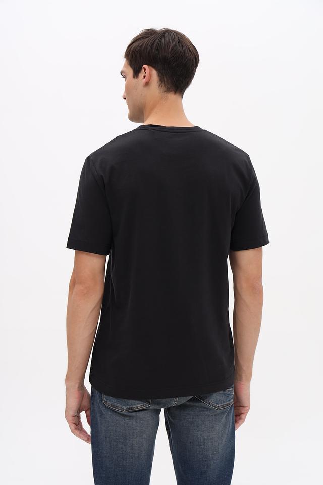 Футболка имеет классический прямой крой, который подходит для любого типа фигуры. Цвет – насыщенный чёрный, что делает её универсальным элементом гардероба.