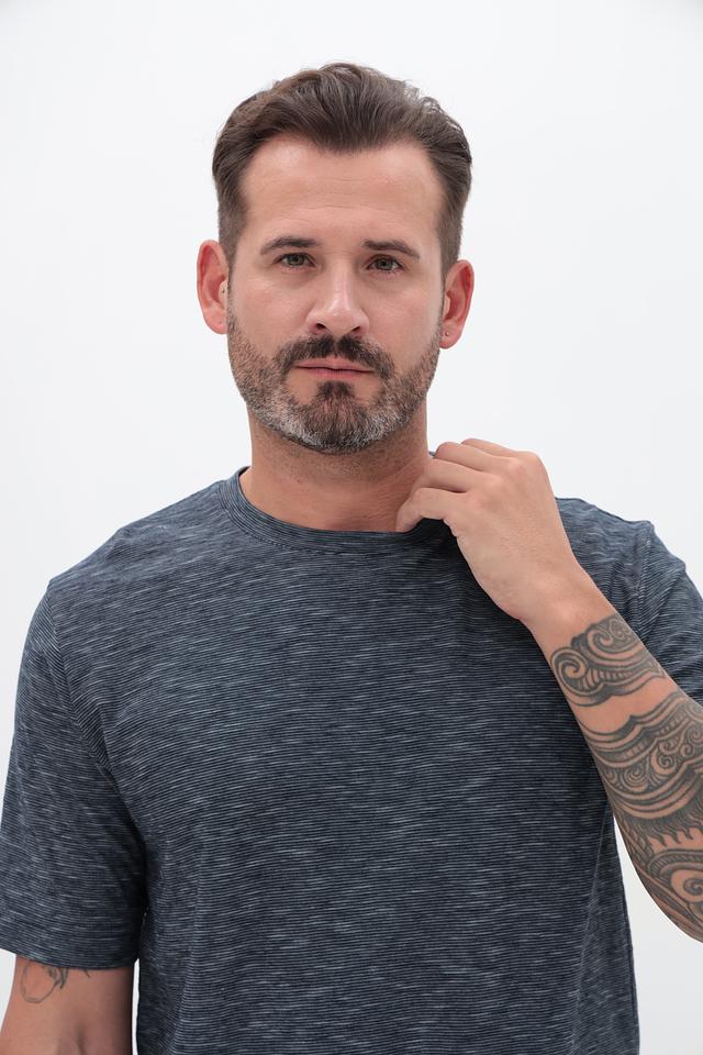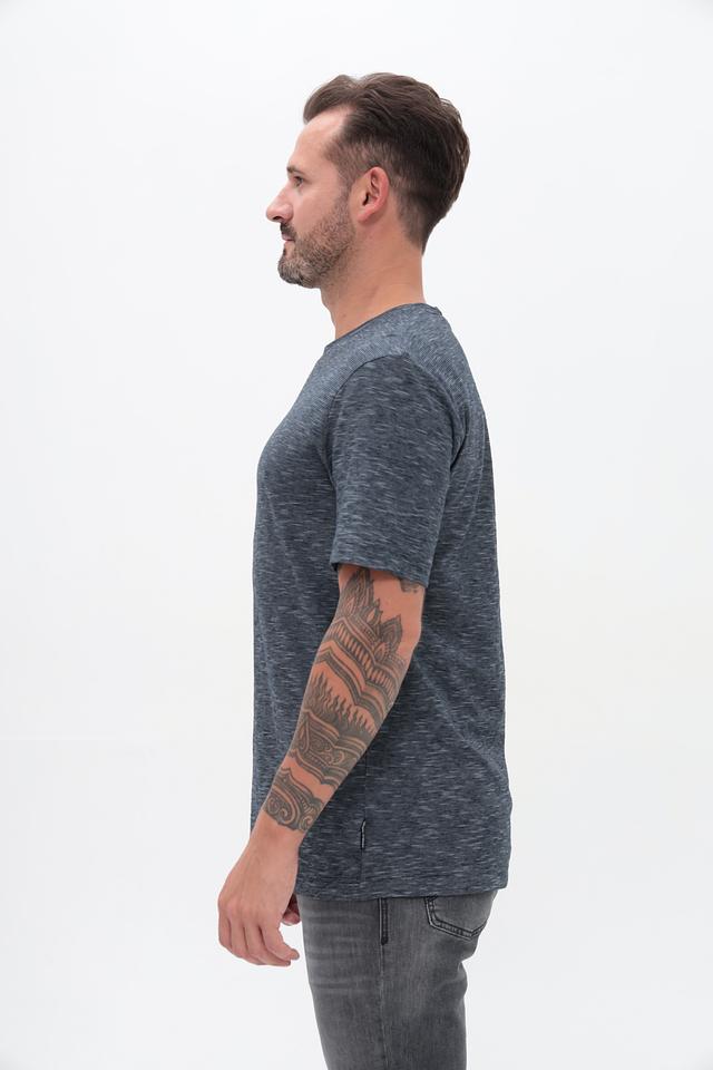 Футболка имеет классический крой, который подходит для любого типа фигуры. Меланжевая текстура придает ей современный и непринужденный вид. Округлый вырез горловины и короткие рукава делают эту футболку идеальным выбором для теплой погоды.