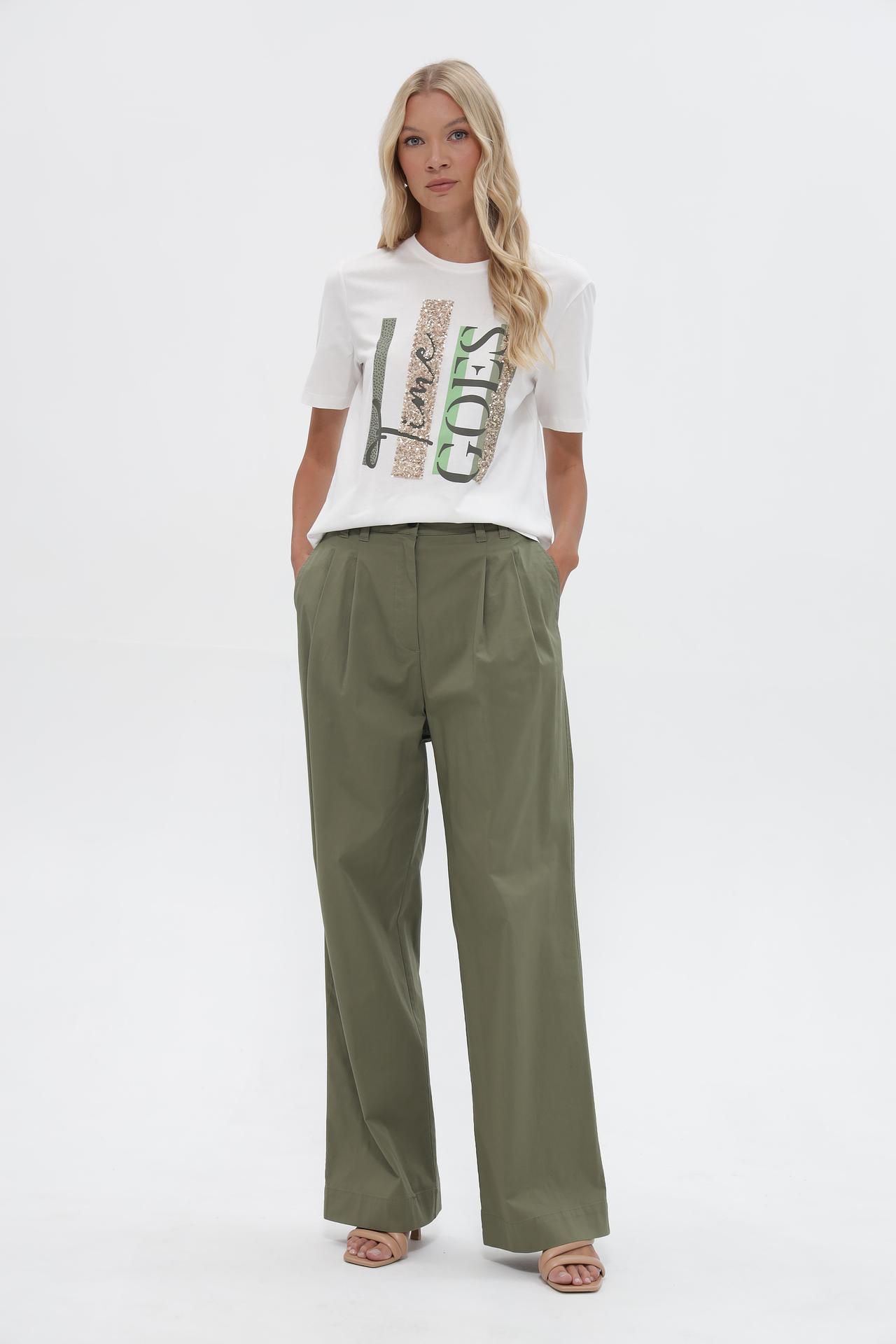 - Крой: Широкие брюки со свободной посадкой. Дополнены элегантными стрелками, которые визуально удлиняют ноги и придают образу изысканность.