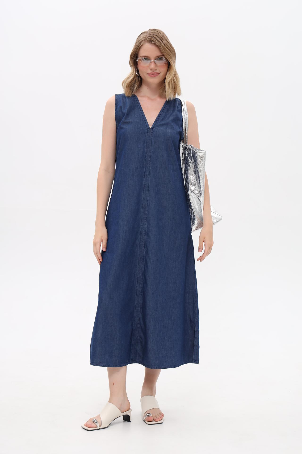 Изысканное платье миди от Marc O Polo, выполненное из премиального материала, сочетающего в себе натуральный хлопок и лиоцелл. Этот состав обеспечивает не только комфорт и мягкость на ощупь, но и долговечность изделия. Лаконичный дизайн с V-образным вырезом горловины и отсутствием рукавов делает это платье универсальным выбором для различных случаев. Идеально подходит для создания как повседневных, так и более нарядных образов.
