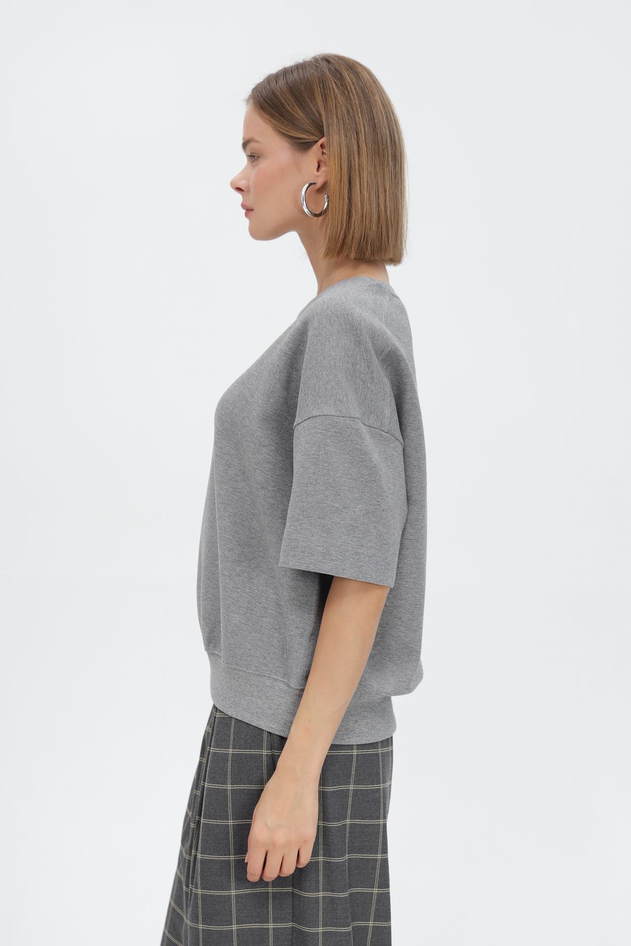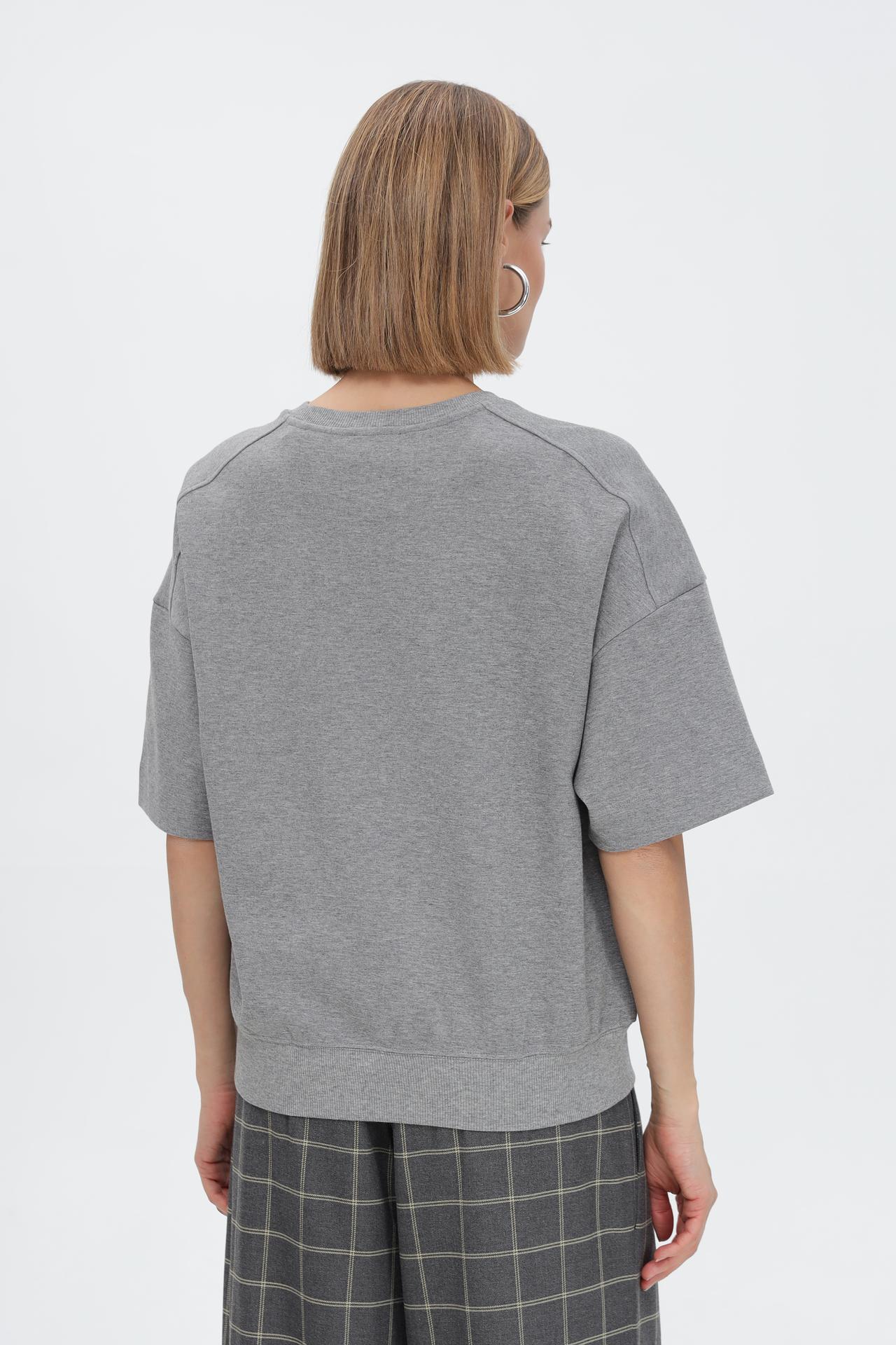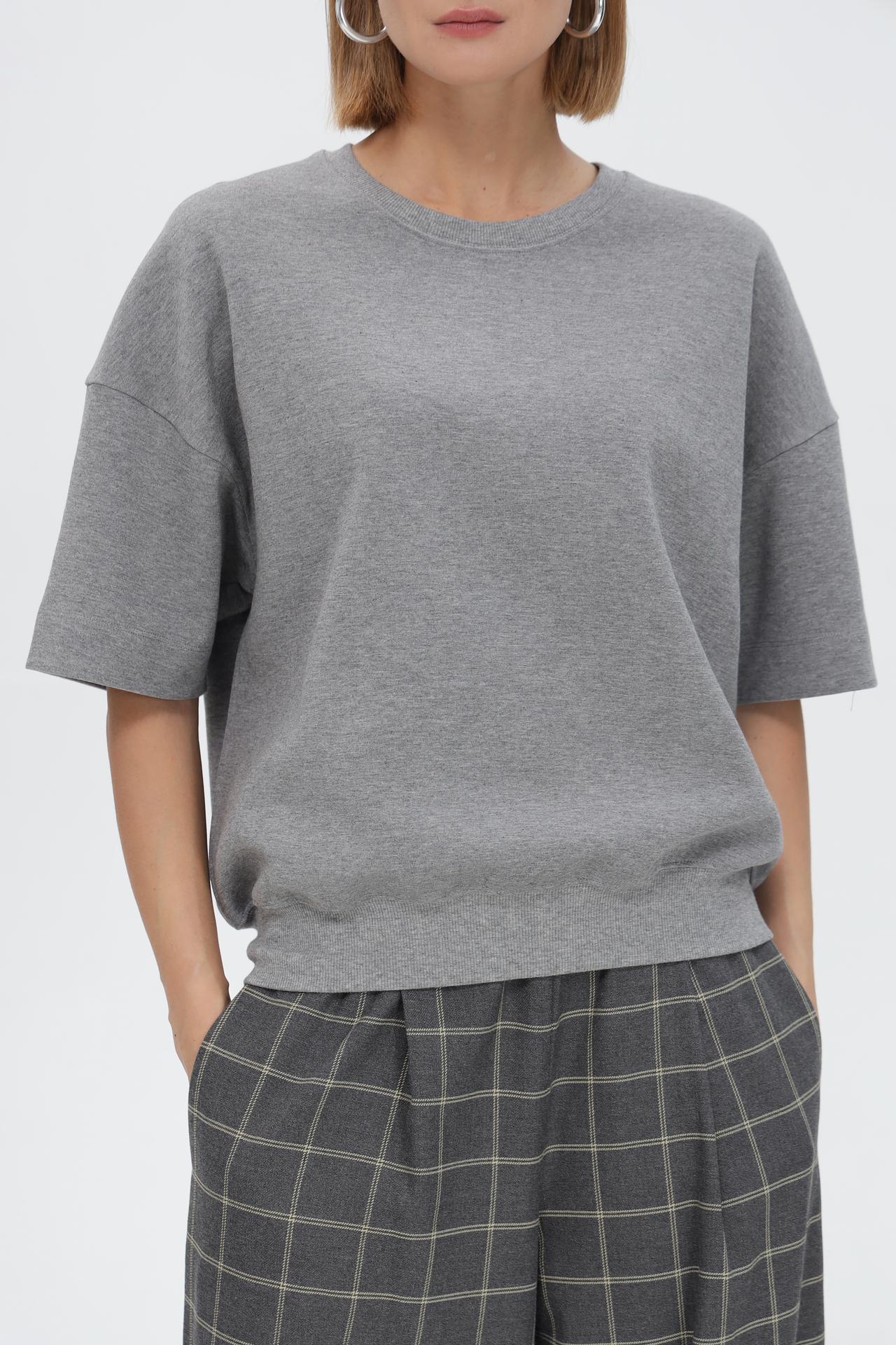 - Универсальность: Благодаря нейтральному серому цвету и минималистичному дизайну, футболка легко сочетается с различными элементами гардероба – от джинсов до юбок и брюк.