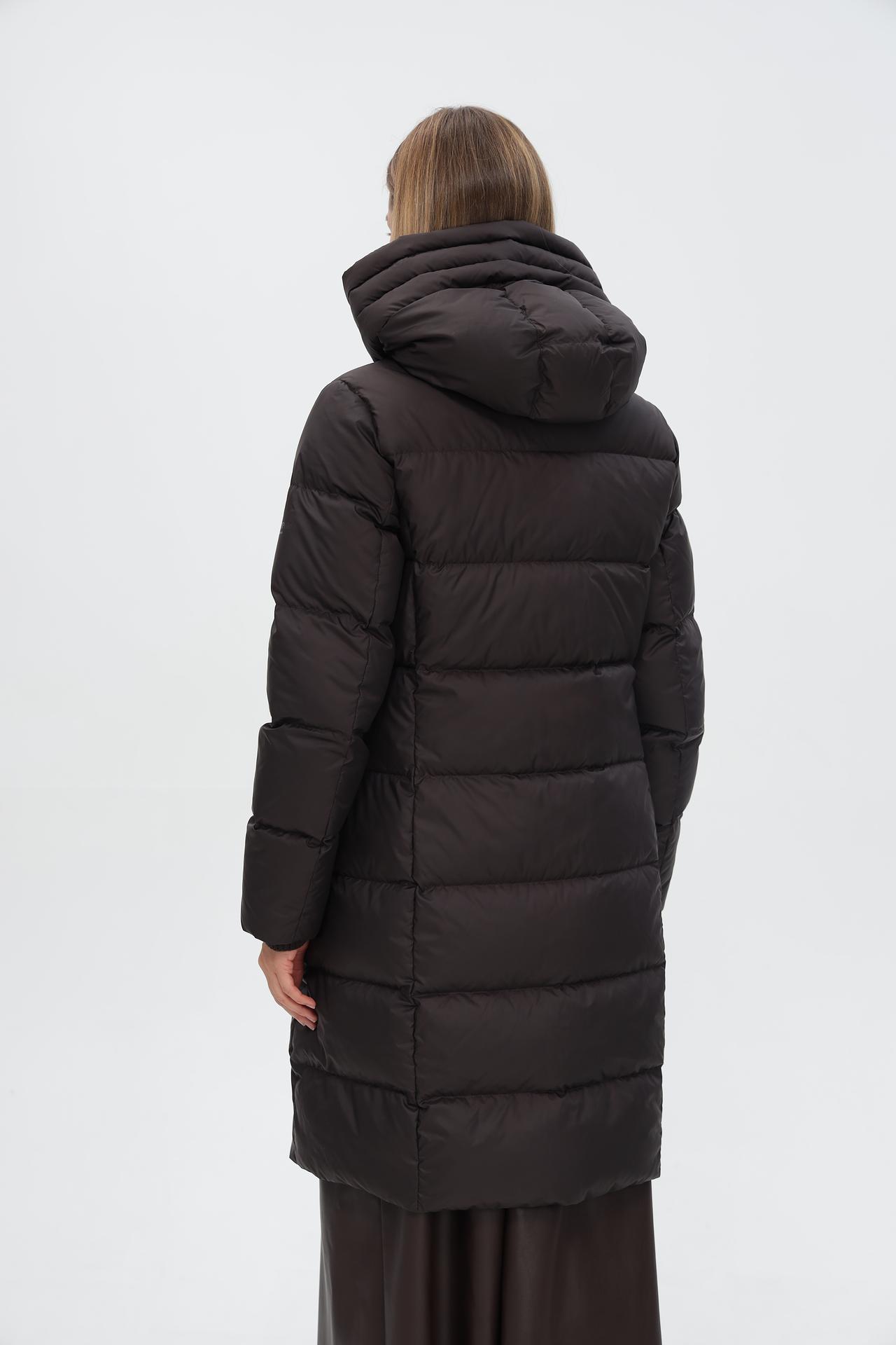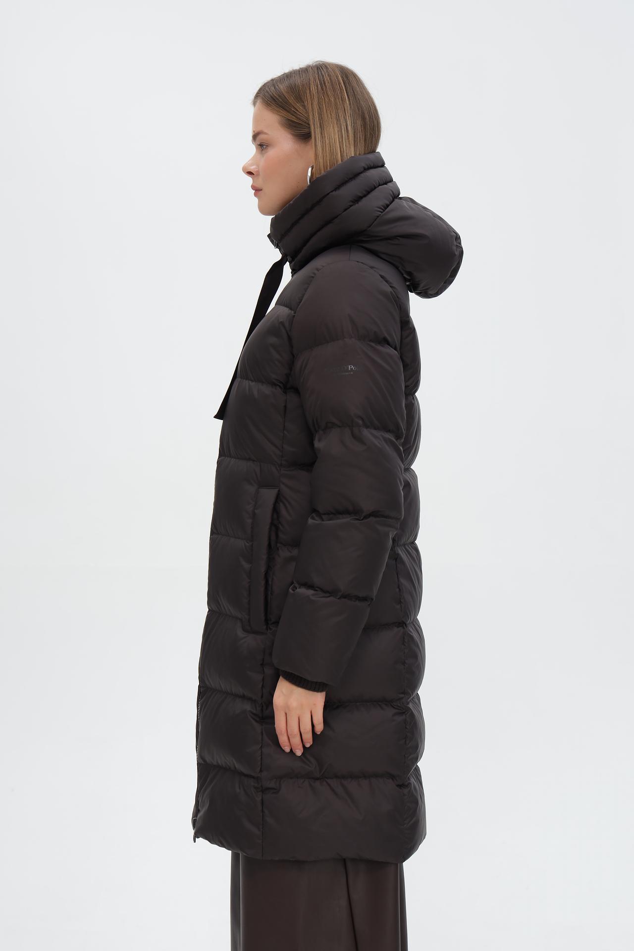 - Дизайн: Современный пуховик средней длины с капюшоном. Горизонтальная прострочка придает изделию элегантность и обеспечивает равномерное распределение утеплителя.