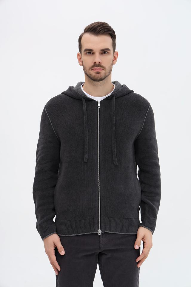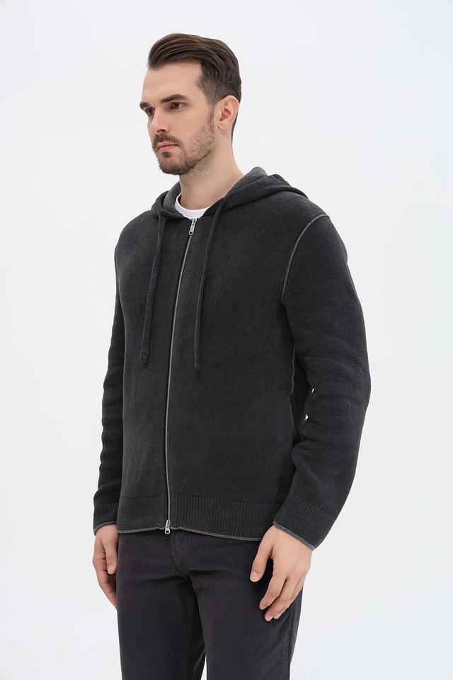 Мужской кардиган от бренда Marc O Polo. Выполнен в сером цвете. Модель с длинным рукавом и капюшоном, застегивающимся на молнию.
