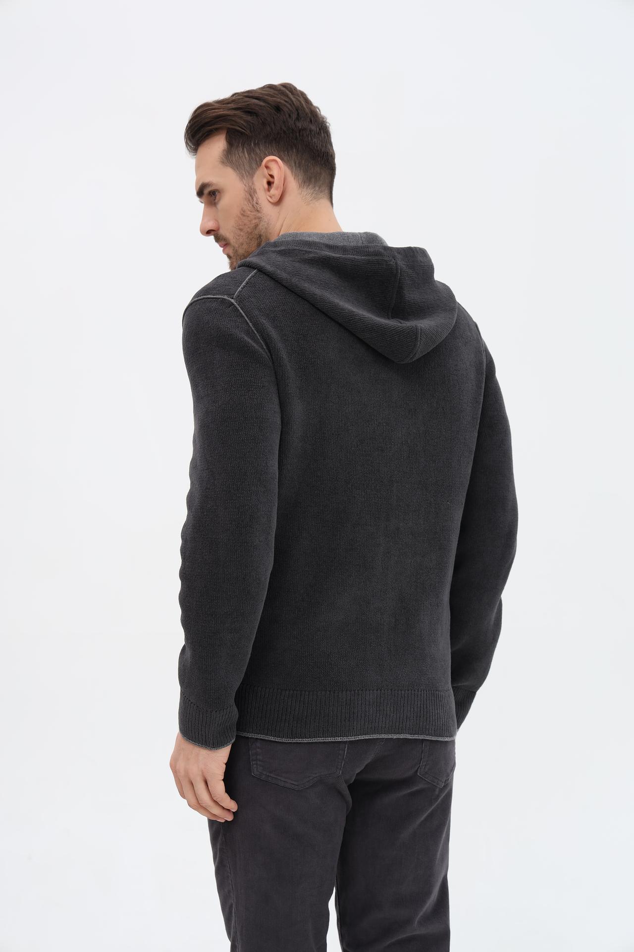 Кардиган отличает классический дизайн с капюшоном и застежкой на молнии. Аккуратные контрастные швы придают изделию особую выразительность, а небольшой логотип бренда деликатно подчеркивает статус вещи. Отличный вариант для повседневного гардероба, который легко сочетается с различными элементами одежды.