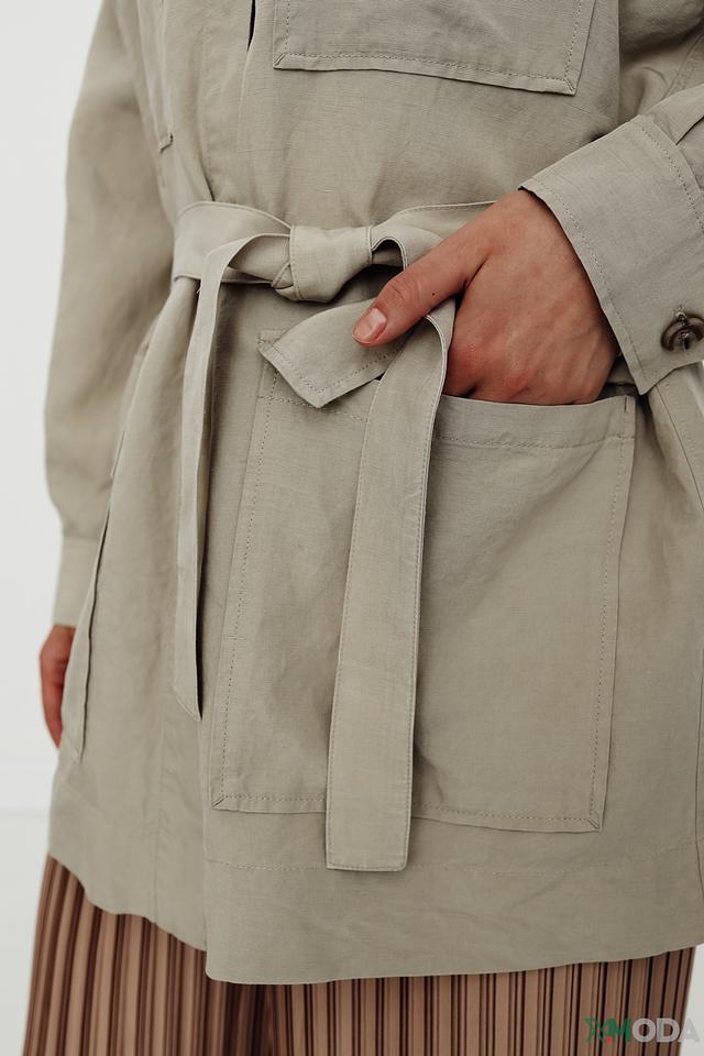 Жакет имеет свободный крой, который обеспечивает свободу движений и комфорт в носке. Застежка на пуговицы, а также пояс в комплекте позволяют регулировать силуэт и создавать различные варианты стилизации.