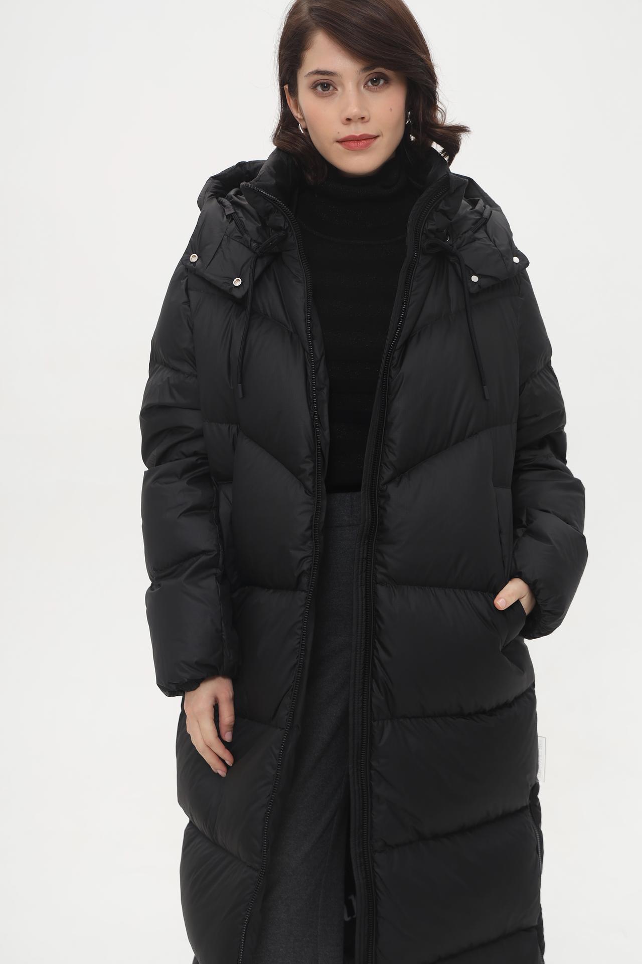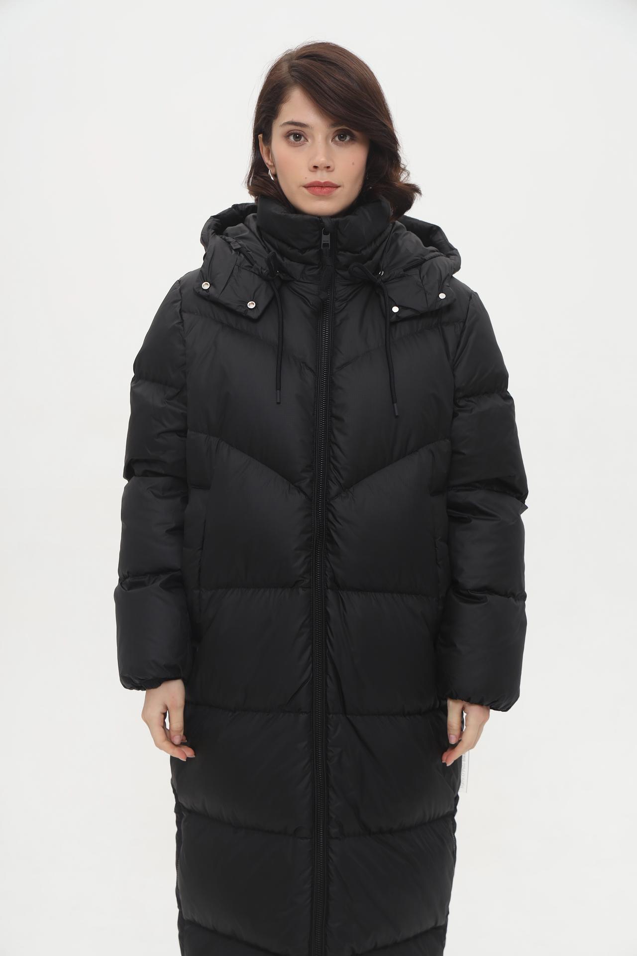 - Дизайн: Удлиненный крой и современный стеганый узор делают это пальто не только практичным, но и модным решением. Глубокий капюшон и высокий воротник надежно защищают от ветра.