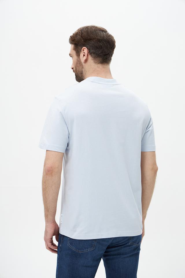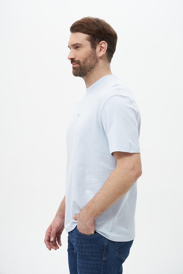 Небольшой логотип бренда, расположенный на груди, придает футболке стильный и лаконичный вид. Голубой цвет делает эту модель универсальной и легко сочетаемой с другими элементами одежды. Эта футболка станет незаменимой вещью в вашем повседневном гардеробе, обеспечивая комфорт и стиль в любой ситуации.