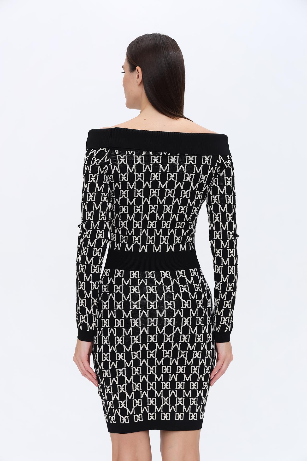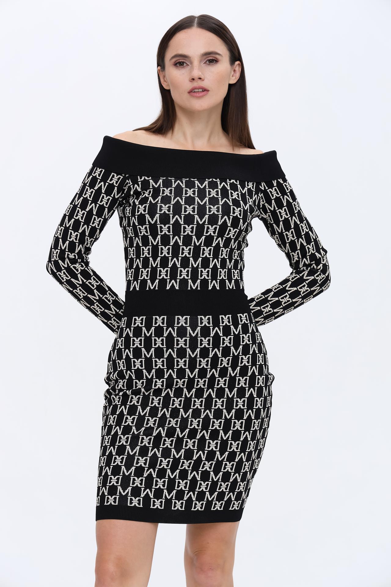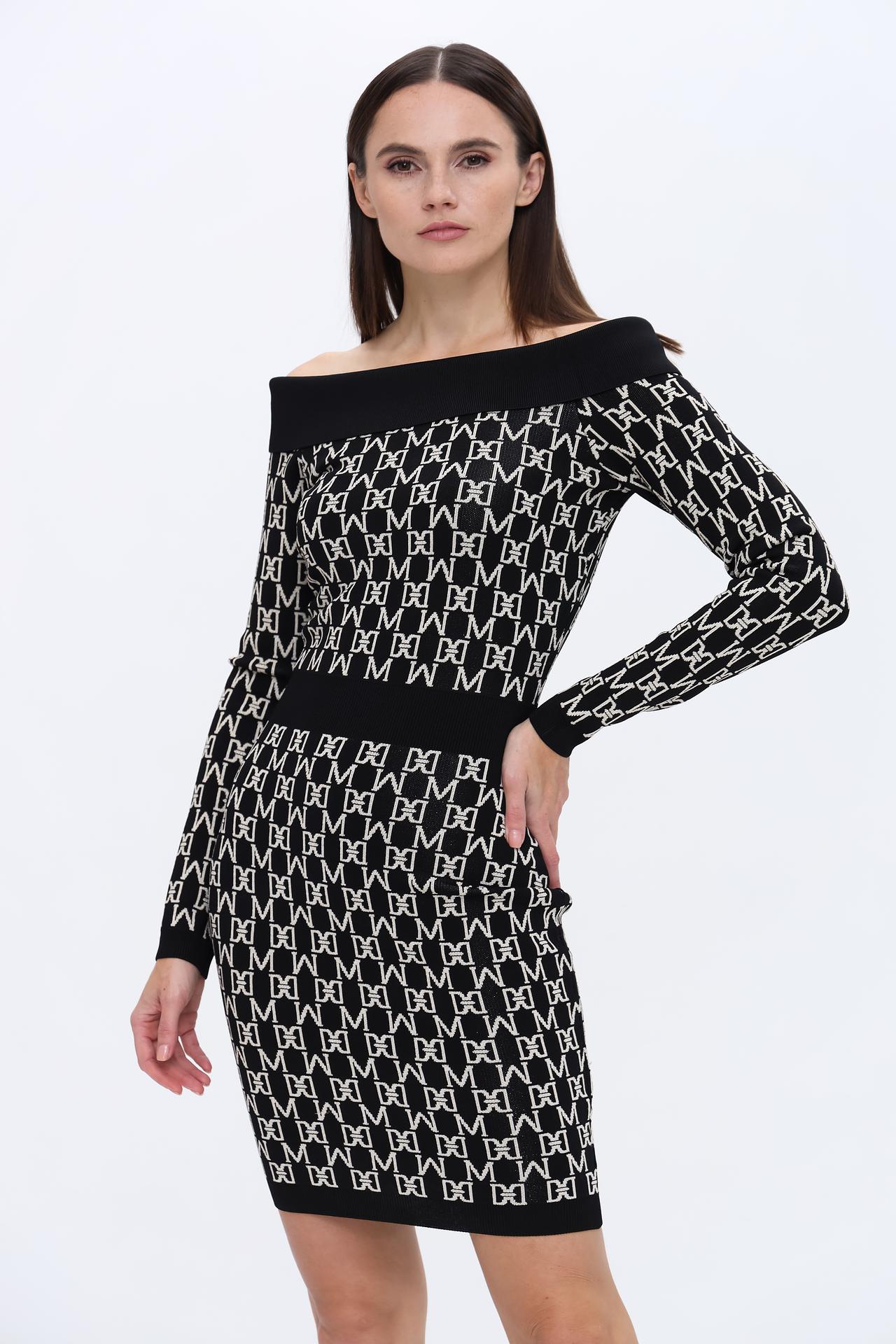 Элегантное вязаное платье Marciano с открытыми плечами станет изысканным дополнением вашего гардероба. Оригинальный принт с монограммой бренда придает изделию узнаваемость и роскошный вид. Модель идеально подходит для создания как вечерних, так и повседневных образов.