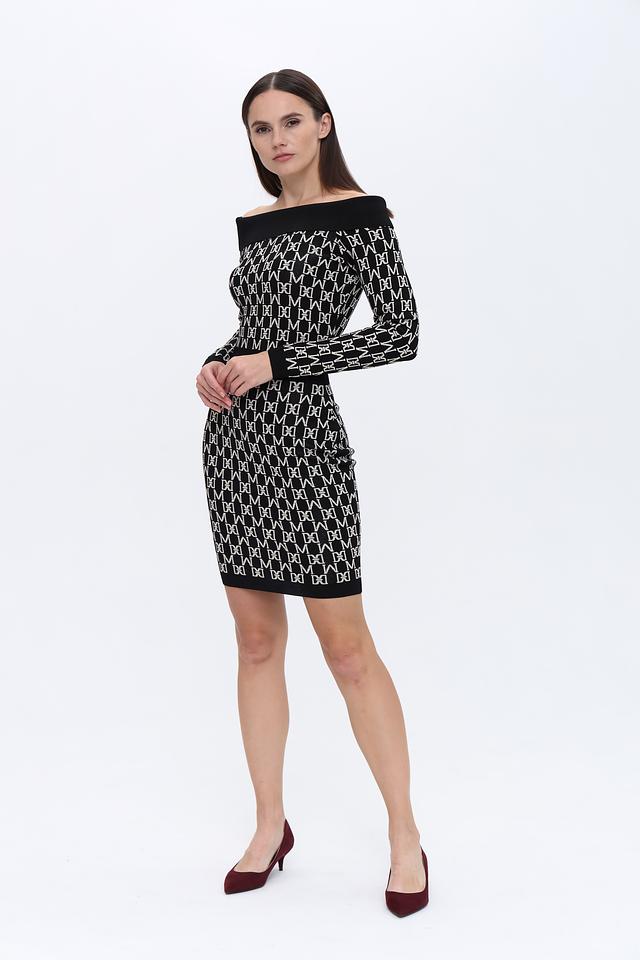 Платье Marciano черного цвета с длинным рукавом и открытыми плечами, украшенное фирменным логотипом по всей поверхности. Трикотажное платье облегающего силуэта идеально подчеркнет фигуру и станет стильным дополнением вашего гардероба. Состав: вискоза 72%, полиамид 15%, полиэстер 7%, металл 4%, эластан 2%