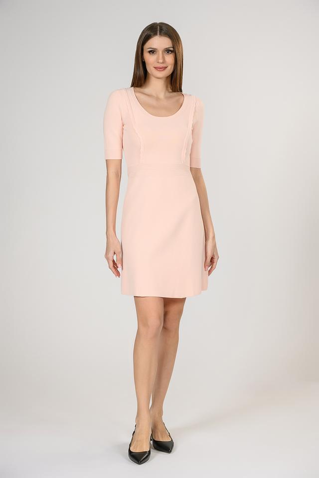 Особенностью модели является деликатная текстура ткани и аккуратный вырез горловины. Короткие рукава и лаконичный дизайн делают это платье универсальным вариантом для различных случаев – от повседневной носки до особых мероприятий.