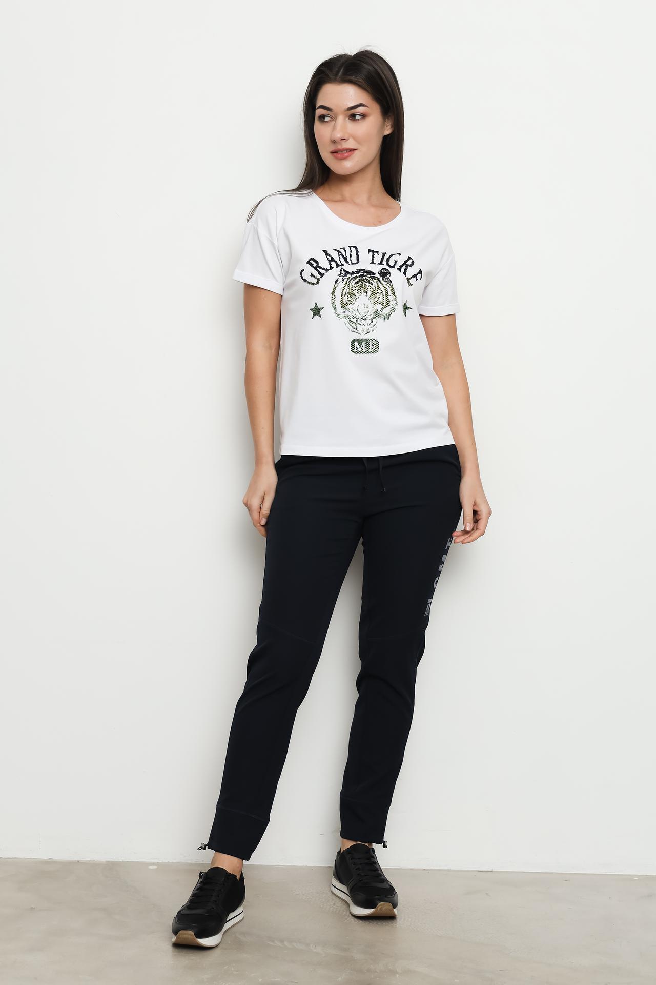 Стильная и удобная белая футболка от Margittes станет отличным дополнением к вашему гардеробу. Изготовленная из качественного хлопка с добавлением эластана, она обеспечивает комфорт и свободу движений на каждый день. Оригинальный принт в виде тигра добавляет образу индивидуальности и делает эту футболку отличным выбором для создания ярких и запоминающихся образов.