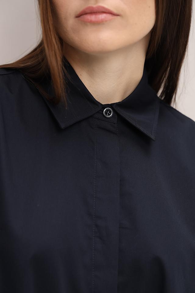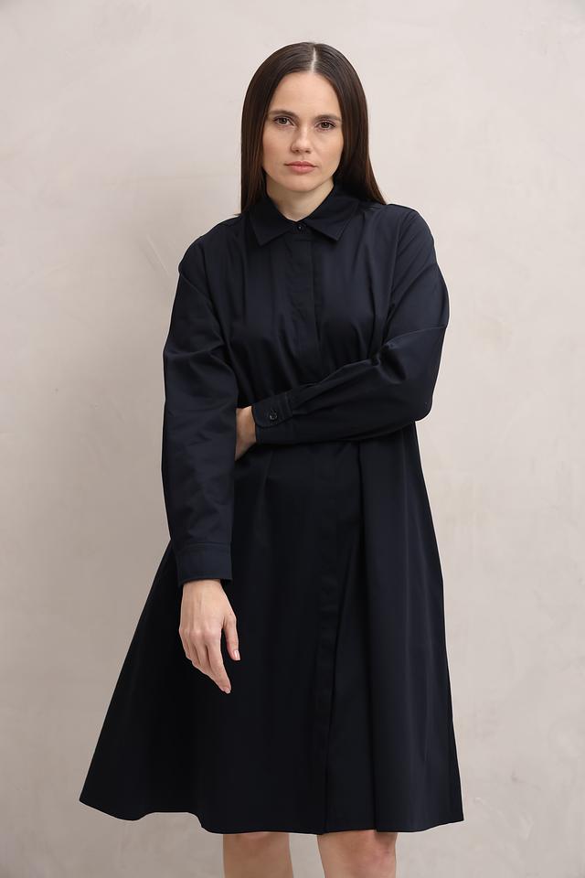 Тёмно-синее платье рубашка от Margittes выполнено из 100% хлопка. Модель свободного кроя с длинным рукавом и воротником рубашечного типа станет отличным выбором для создания повседневного образа. Состав: хлопок 100%