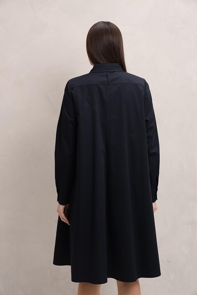 Это платье рубашка от бренда Margittes выполнено в тёмно-синем цвете. Модель имеет прямой, слегка расклешенный силуэт, который обеспечивает комфорт и свободу движений.