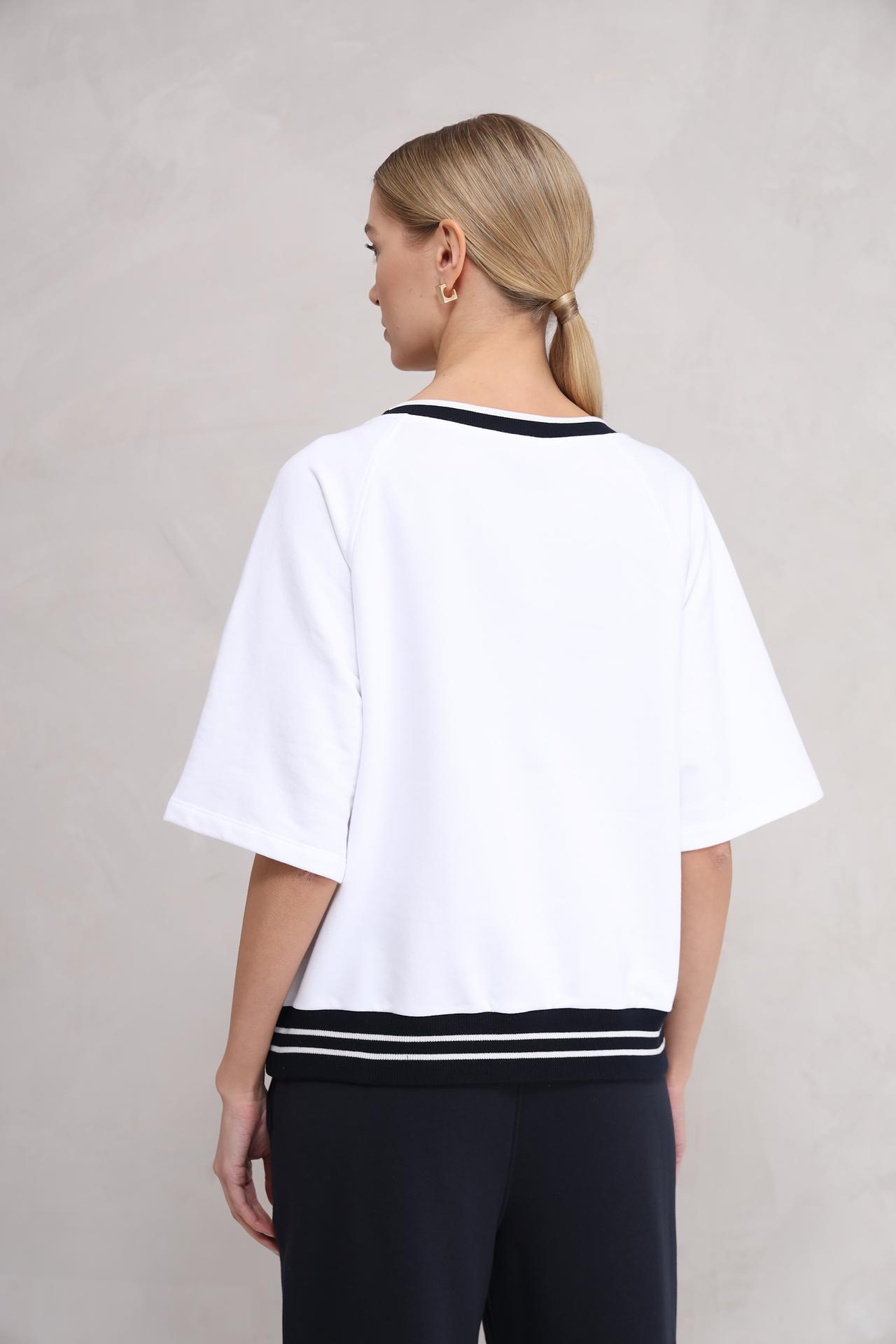 - Универсальный дизайн: Белый цвет и лаконичный принт позволяют легко сочетать пуловер с другими элементами гардероба.