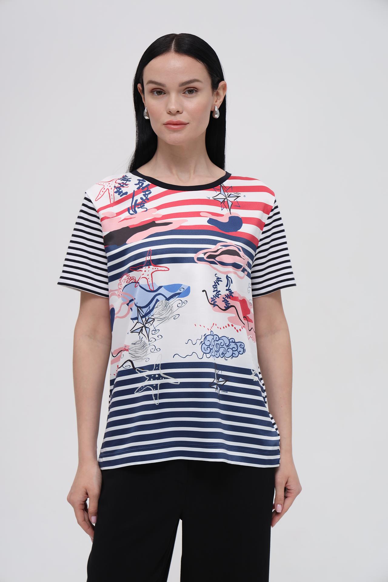- Дизайн: Классический крой футболки дополнен ярким принтом, который добавляет индивидуальности и стиля.