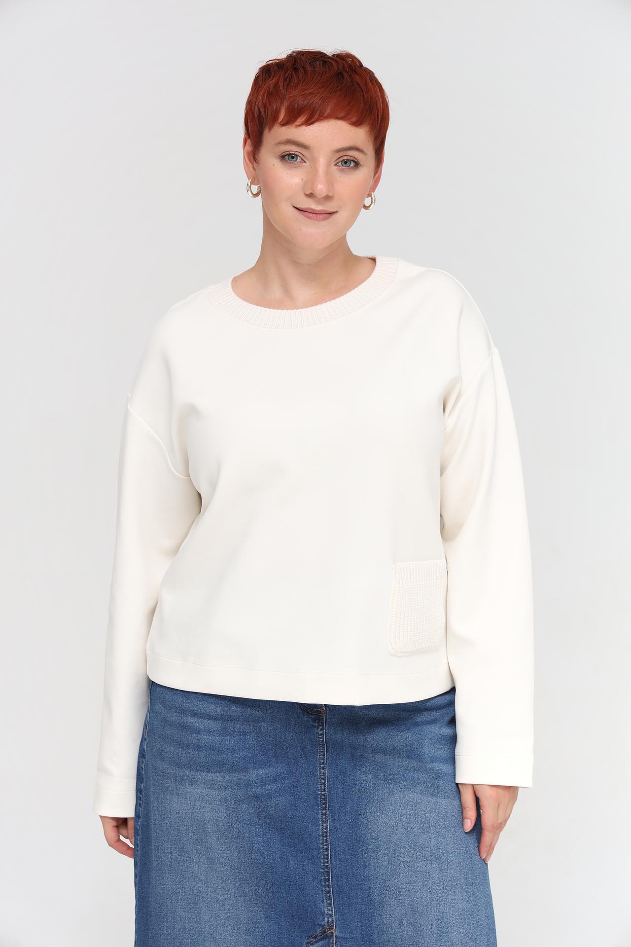 Пуловер Margittes белый с накладным карманом